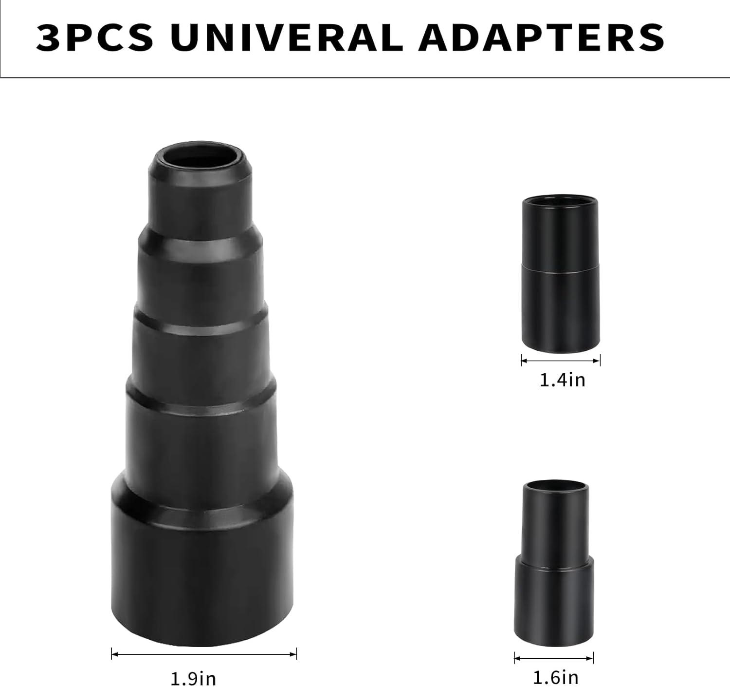 • Compatible with All Shop Vacuums: 3 diverse adapters are included to accommodate a wide range of vacuum hoses.Adapter A fits hoses with 1 1/4"(32mm) ID and 1 1/2"(38mm) OD, while Adapter B for 40mm ID and 48mm OD hoses. The 5-tier adapter fits hoses with IDs of 1", 1 1/4", 1 3/8", 1 1/2" and 1 7/8".
