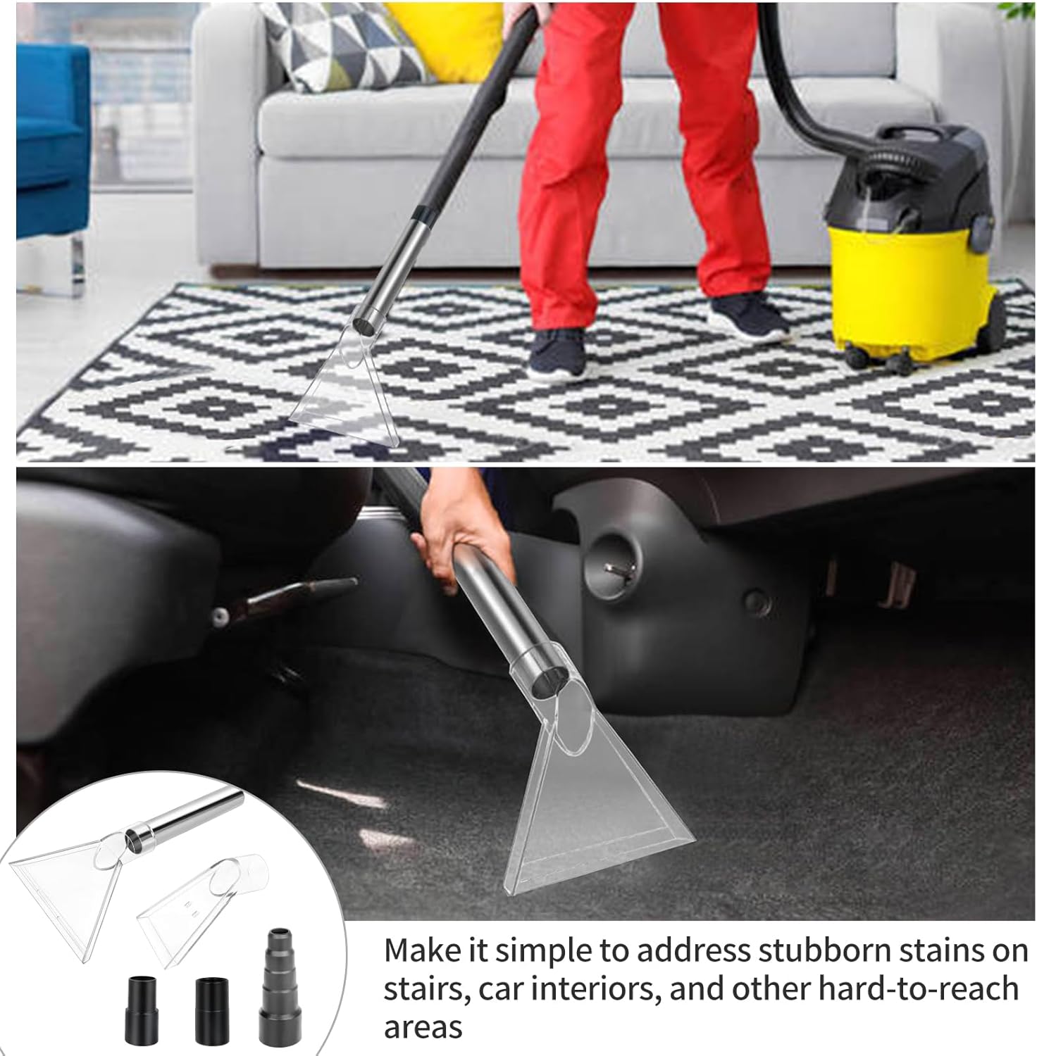 • Wide Application: Connect the extractor head, stainless steel tube, adapter, and vacuum cleaner in turn, to gain a vac extractor and put it into use immediately. The vacuum attachment can widely be used in dust, hairs, crumbs, soot, liquid, and auto detailing. A great vacuum cleaning tool on car detailing, mats, carpets, sofas, etc. Rapid extraction of sewage from cleaning, quick clean and dry.
