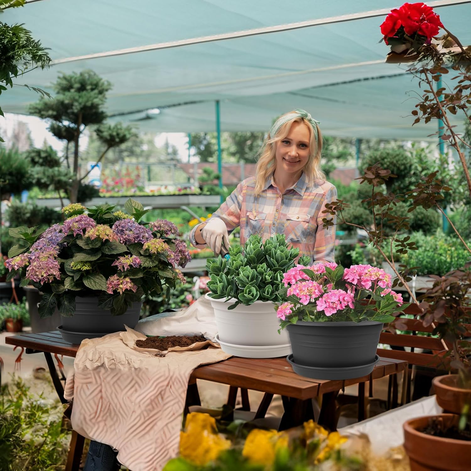 • 【Plant Pots Outdoor Indoor 】Plastic pots for plants can be used to decorate your indoor areas such as living rooms, bedrooms, windowsills, desktops, shelves, or outdoor areas such as gardens, foyers, yards, terraces, offices, and more. These large flower pots can bring a modern and stylish visual expression to your home without any incongruity.