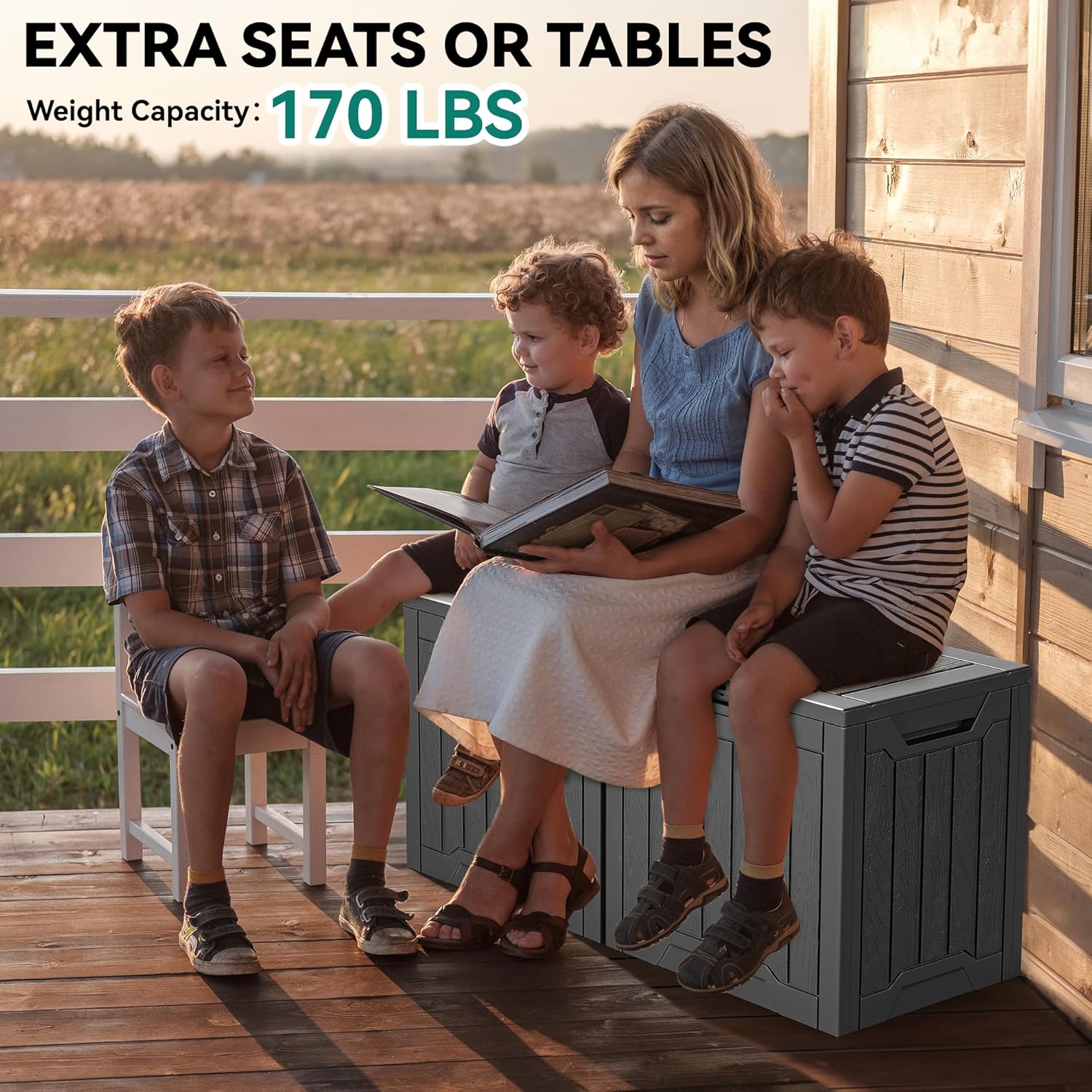 • Practical and Aesthetic: Our outdoor storage box, with a spacious 30-gallon capacity, is not just a storage solution; Its wood-like texture adds a touch of elegance to your outdoor space, and it can also be used as a bench, side table, or patio table