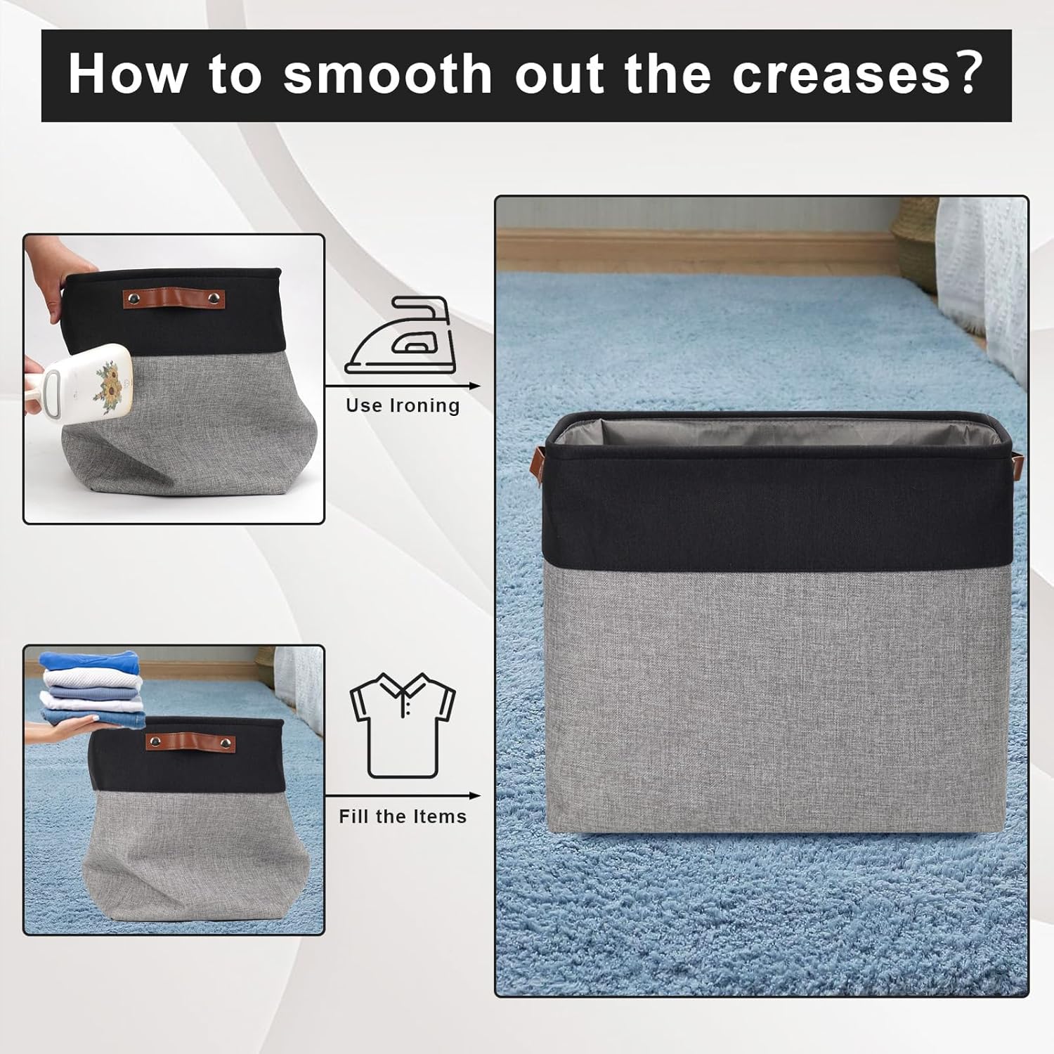 • 【Maintenance & Care Tip】 - Collapsible design for space saving. Our foldable baskets comes in a compression packing which may result in wrinkled storage bin during the long transit. Get rid of the wrinkles by either stuffing the fabric storage bins with blankets and pillows for a few days or steam iron them at low-heat setting. The organization baskets are easy to clean, you can dust the basket with a soft cloth with light soapy water when needed.