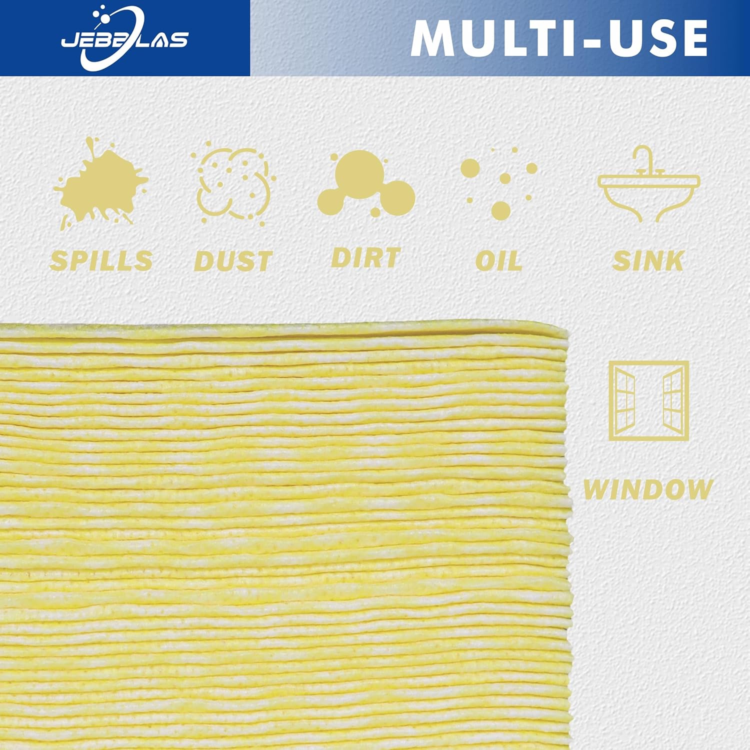 JEBBLAS Handi Wipes Reusable Cloths Dry Cleaning Cloths Dish Towel Dish Cloths Handy Cleaning Wipes,Pack of 50, Yellow