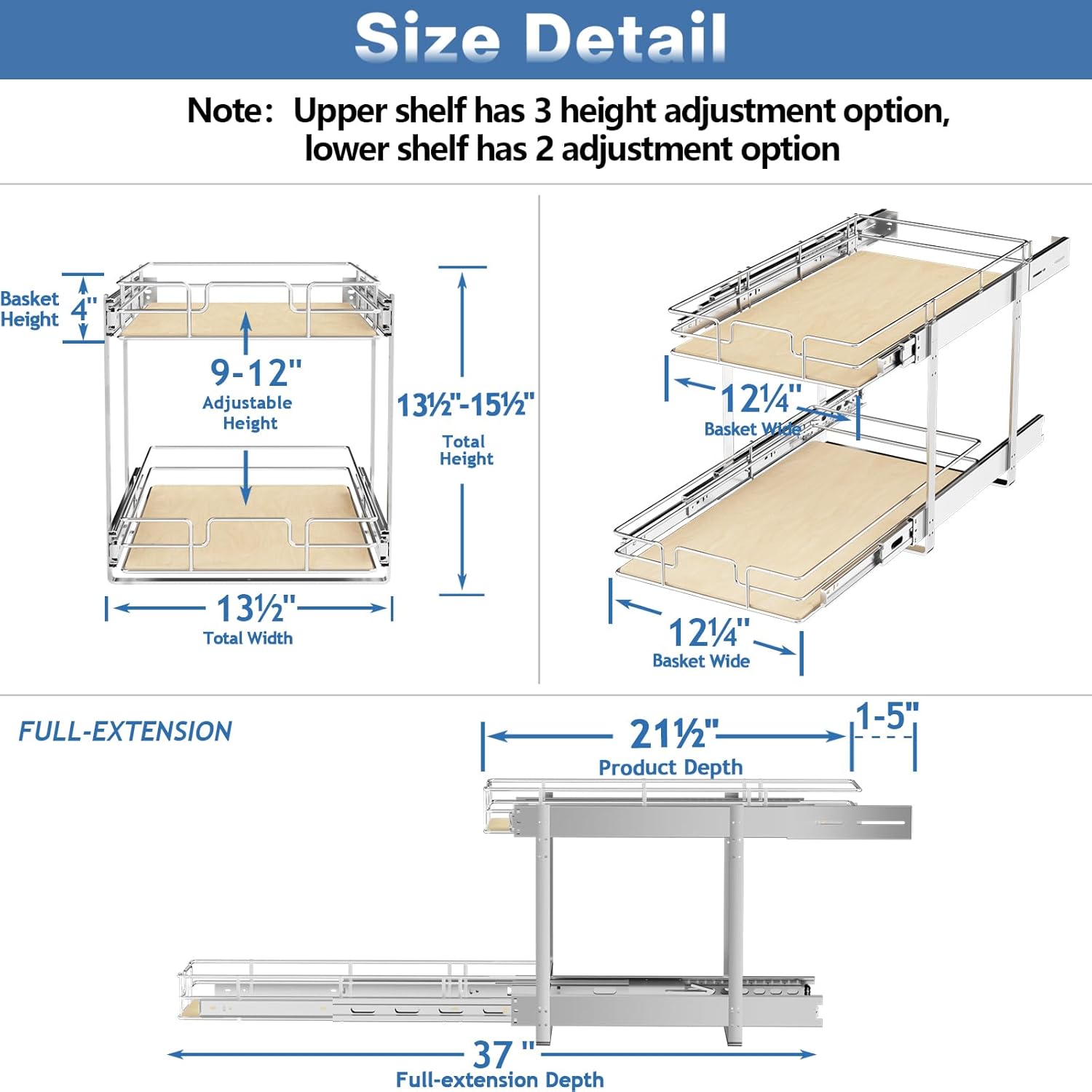 • 【Item Size】Dimensions: 13½"W x 21½"D x 15.5"H. Fits 14" cabinet openings and larger. Please measure your cabinet opening from hinge to opposite side. Its heavy duty construction design makes it totally capacity up to 100 lbs.