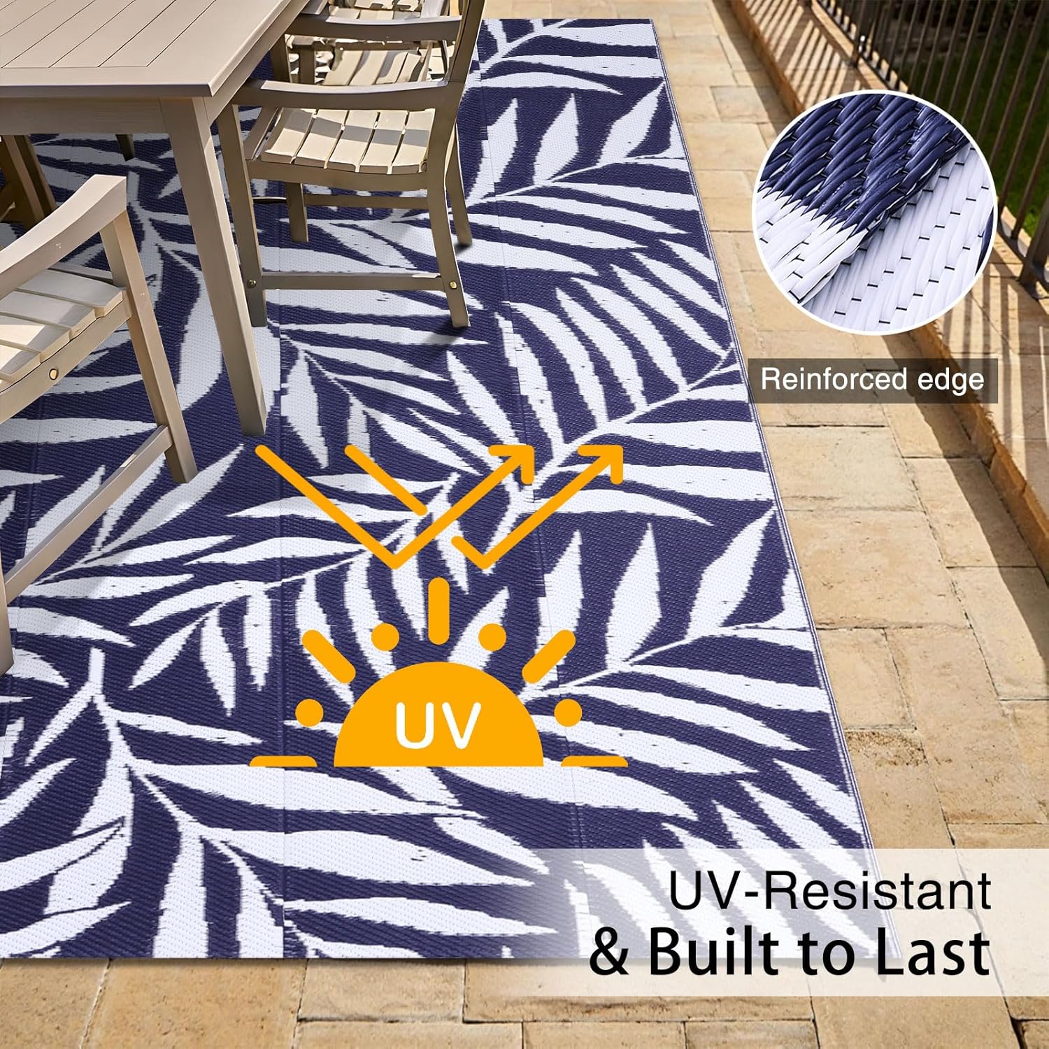 • Stylish & Functional: Our reversible camping rugs feature tropical leaf patterns on both sides, adding a touch of vibrant style to patios, RV's, porches, decks, backyards, and any outdoor space.