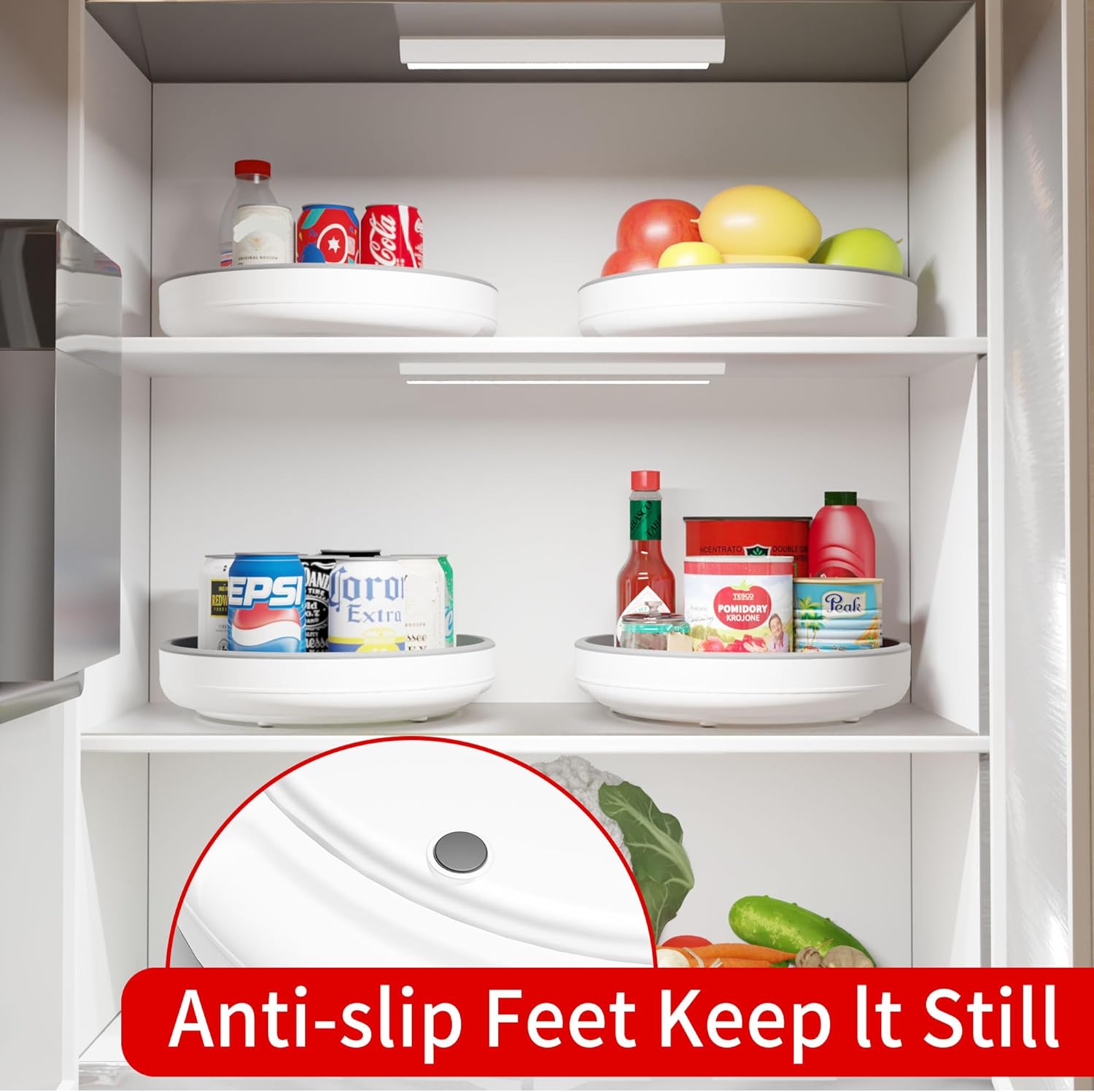 • Package Include: 2 Pack 10 Inch lazy susan organizer. Easily rotating plastic lazy susan turntable for pantry organizers and storage includes non-skid beaded surfaces with anti-slip base feet