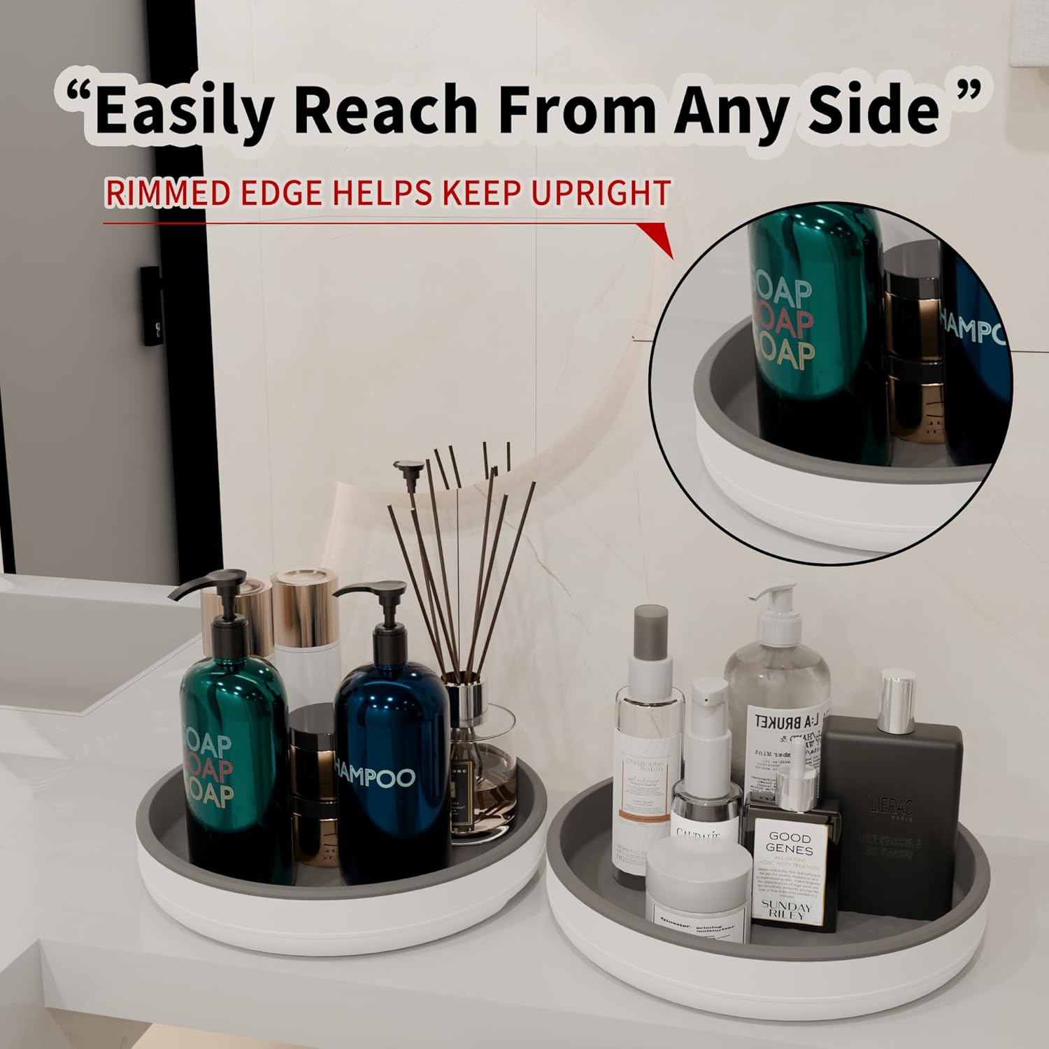 • Durable & Easy to Clean: These lazy susans are made of high quality durable shatter-resistant plastic. Hand wash recommended and dry completely. Make sure the size of the lazy susan organizer base and edge before purchasing