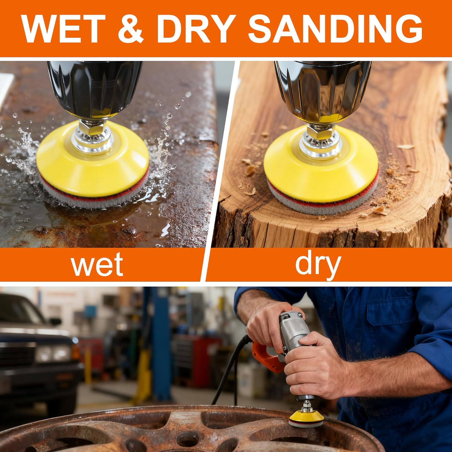 • 【Hook and Loop Design】 With hook and loop design, the stickiness is stable and not easy to fall off, which allows for quick and easy replacement of Sponge sandpaper and improves work efficiency,the tool backing pad with 1/4" shank works with air or electric drill, die grinder and other rotary tools for optimal polishing and sanding