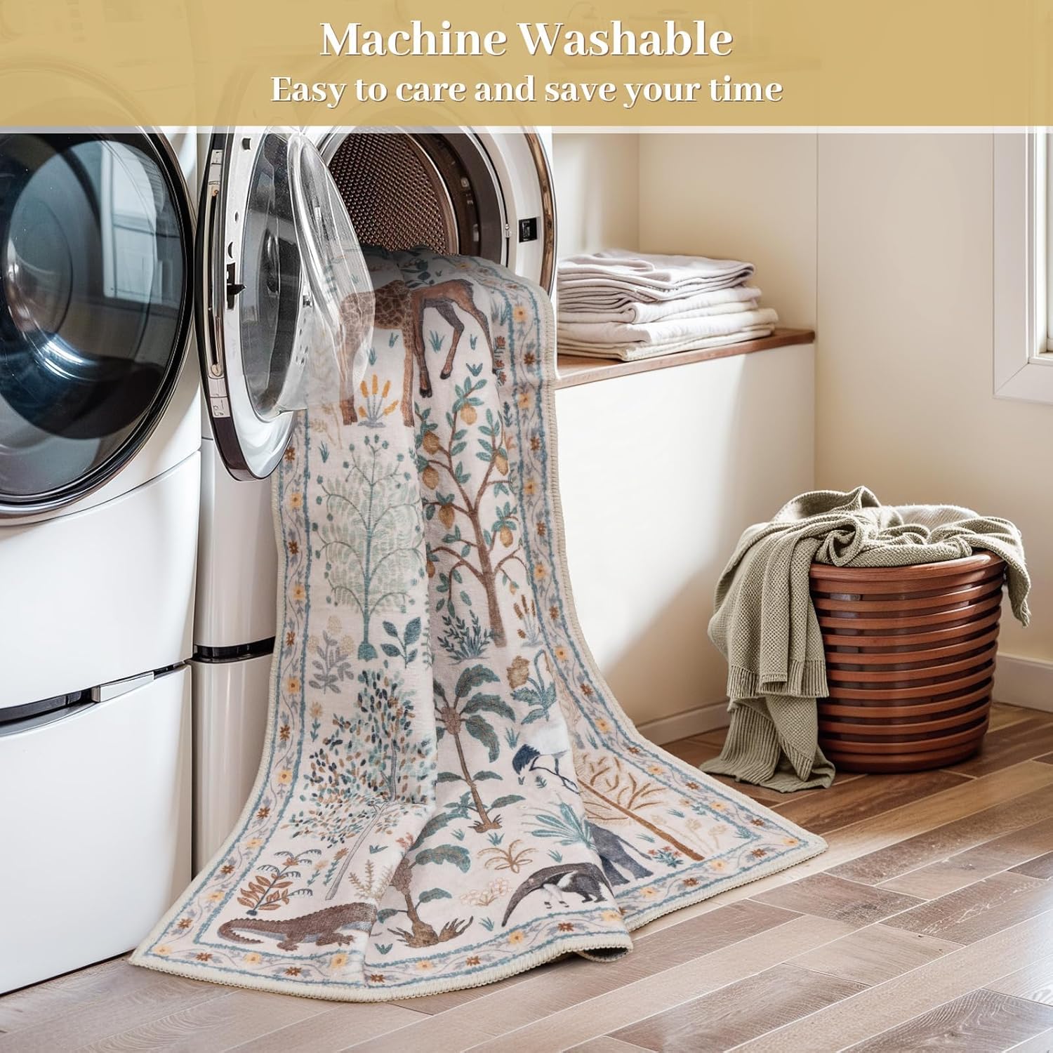 • Soft Printed Jungle Rug: Our area rug 5x7 is made from faux wool fibers, which are super soft and comfortable to step on. This living room rug has vibrant jungle animal motifs against a neutral backdrop, making your space stand out effortlessly