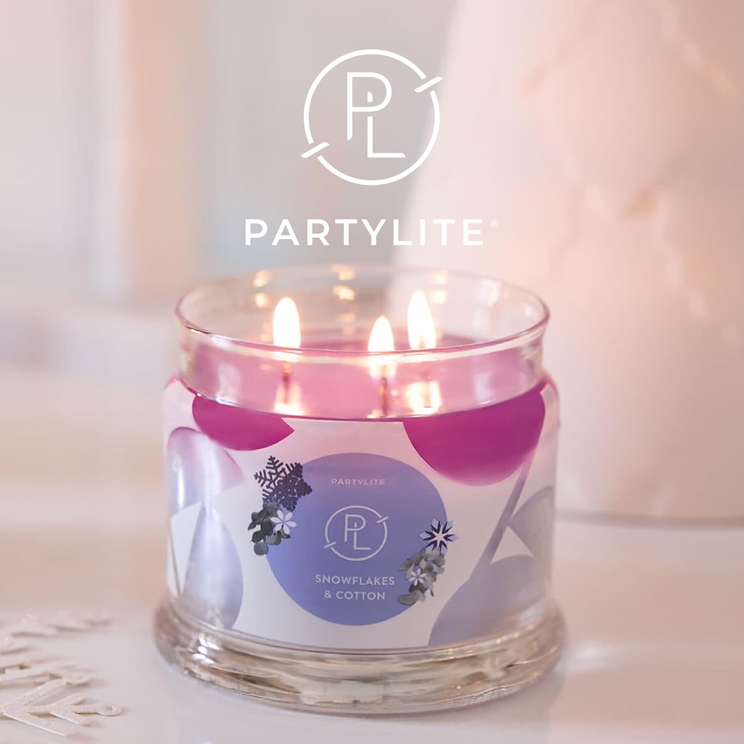 PartyLite 3-Wick Jar Candle, Highly Fragranced Clean Burning Glass Candle, 25-45 Hours Burn Time (Snowflakes & Cotton)