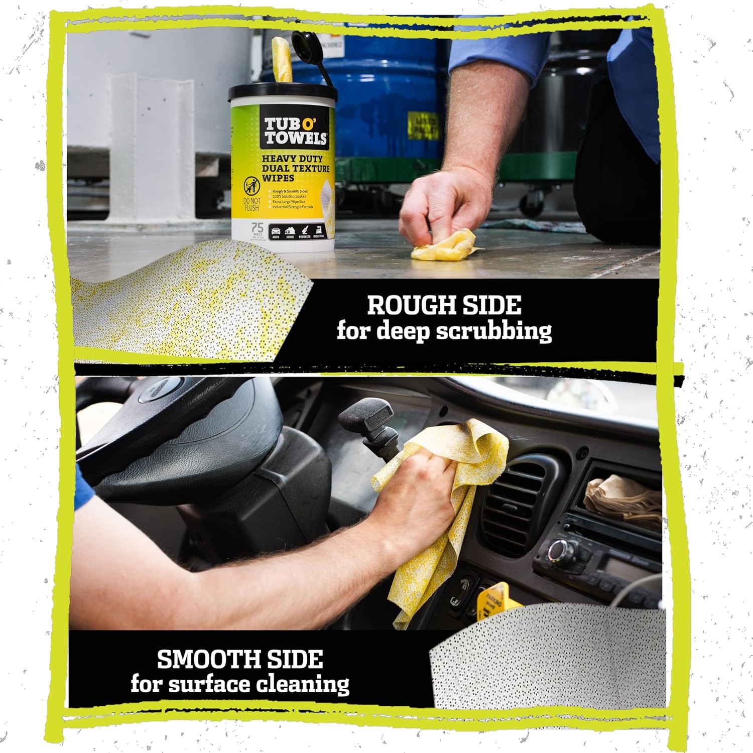 Tub O’ Towels TW75 Heavy-Duty 10" x 12" Size Multi-Surface Cleaning Wipes, Dual Texture, 75 Count Per Canister