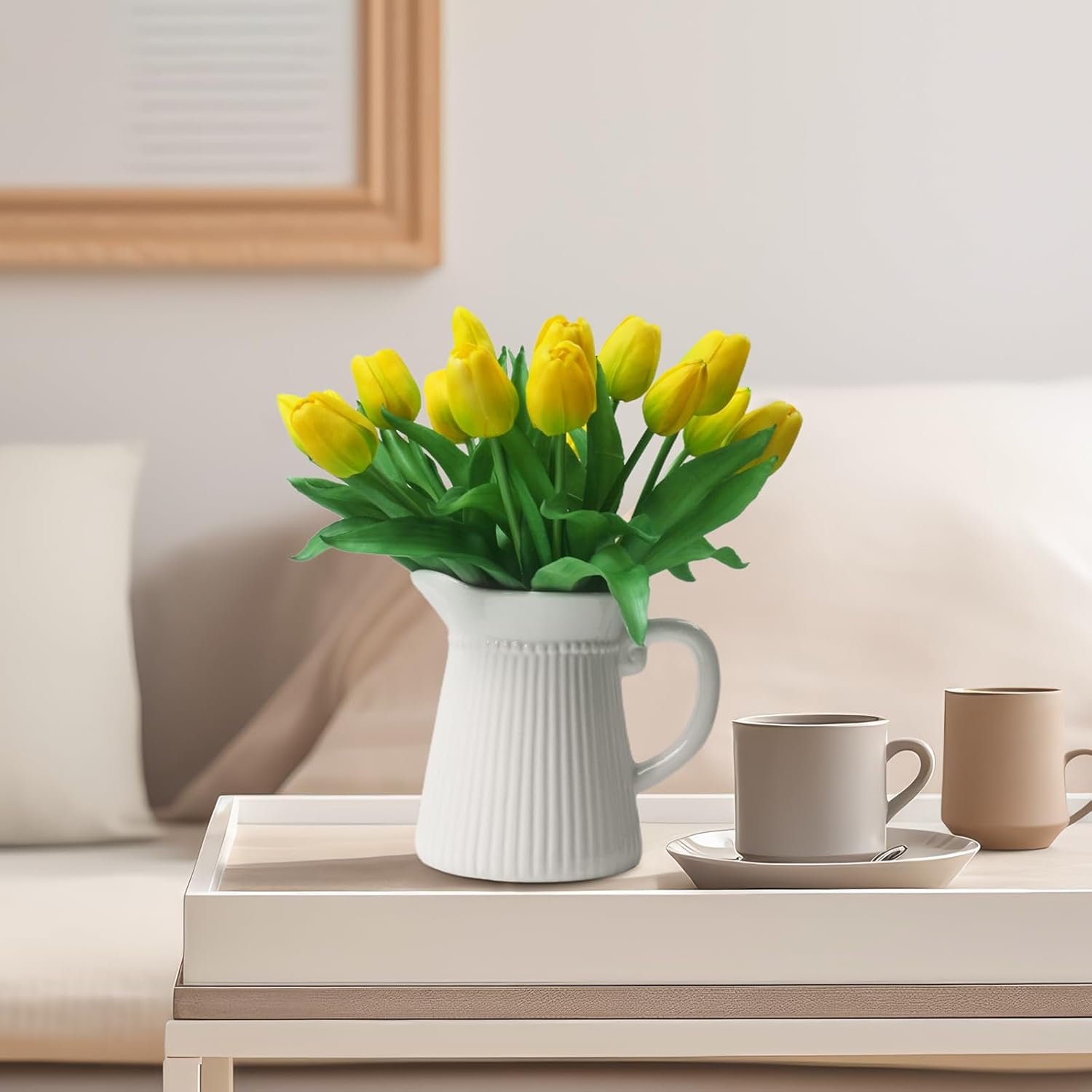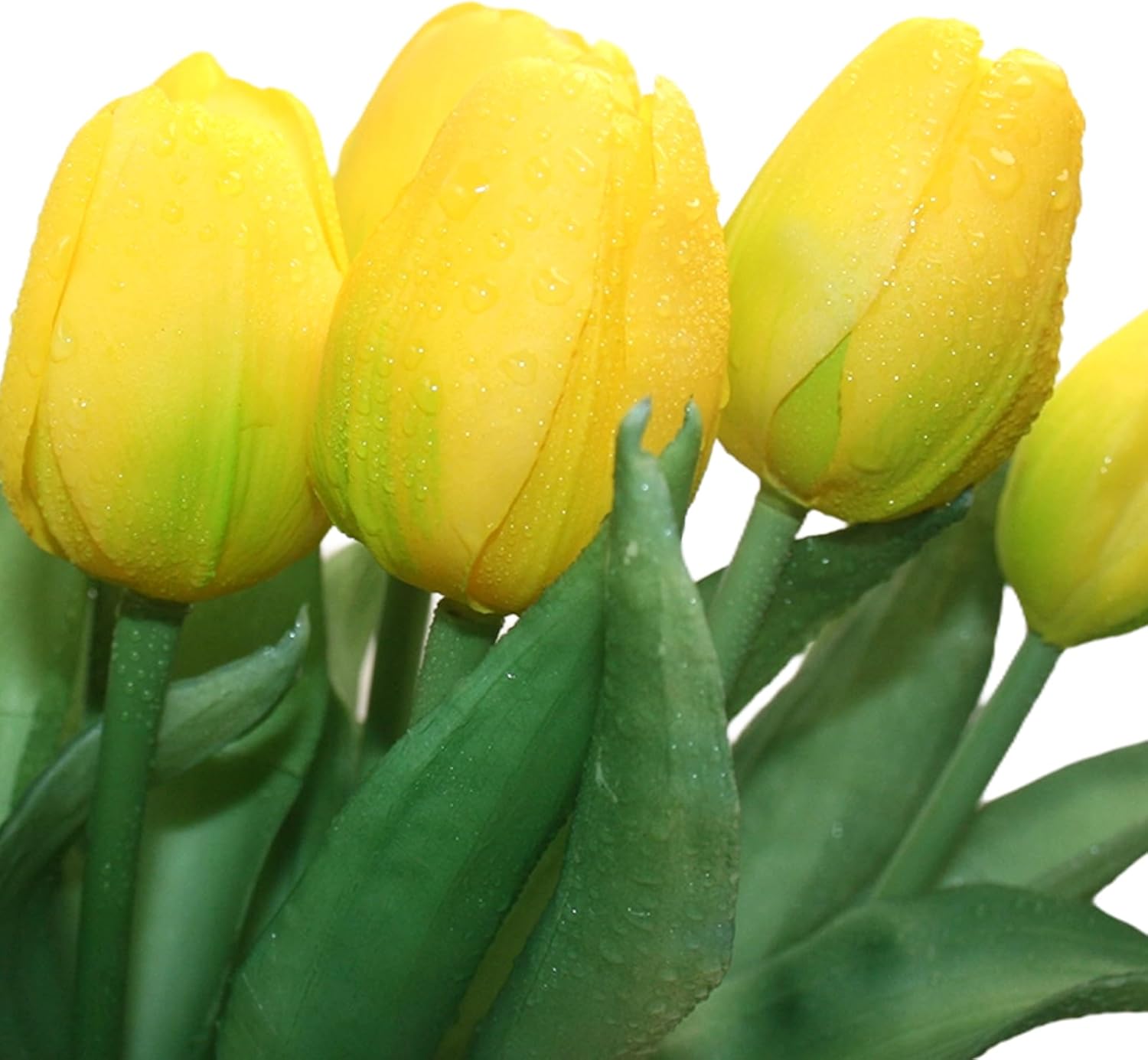 15pcs Artificial Tulips Flowers, Fake Tulips Real Touch, Faux Latex Bouquets, for Party Wedding Home Room Decoration (Yellow)