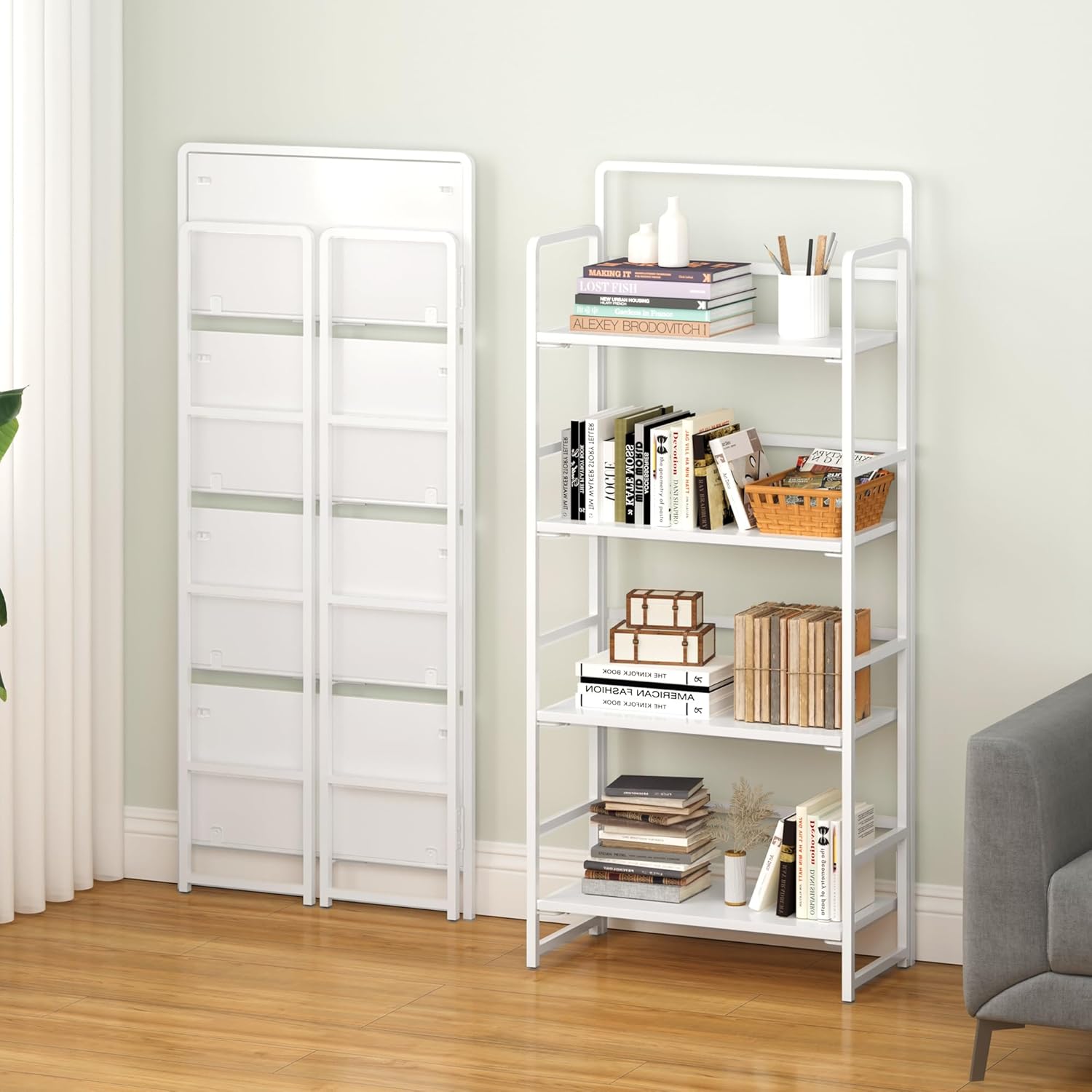 • 【The Unique Foldable Design Shelf】Allows you to hide the bookshelf behind the corner of the wall, behind the cabinet, or behind the sofa, etc, which can save your space. When you move, you don't need to disassemble it, and you can easily take it with you