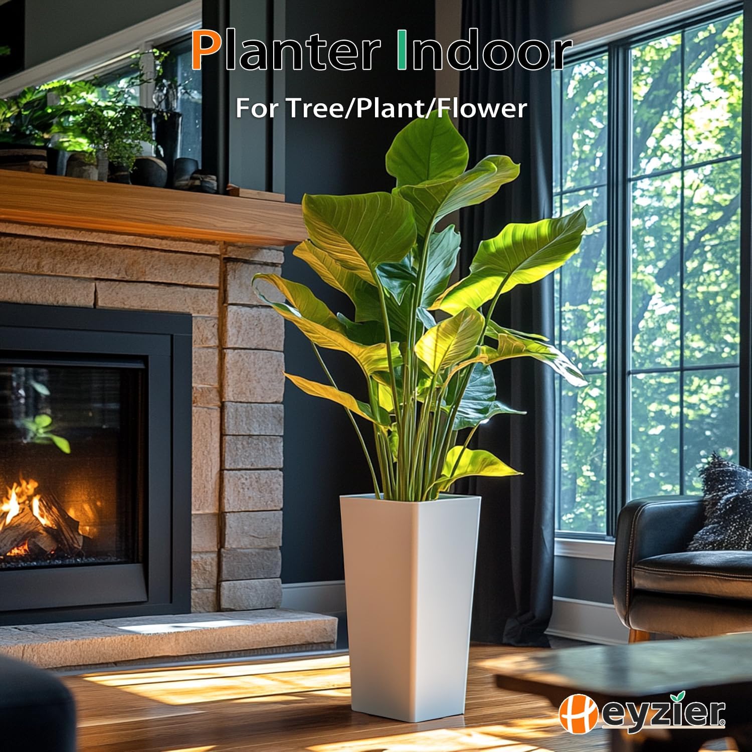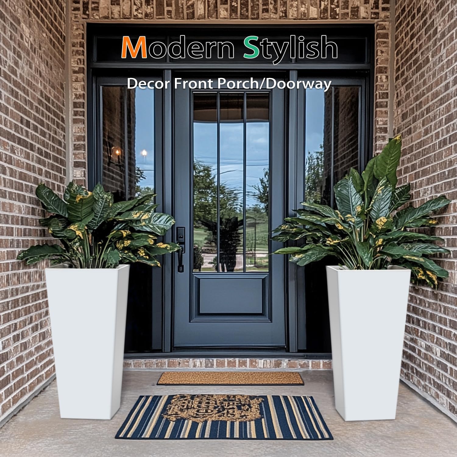 Tall Planters for Outdoor Plants, Large Resin Flower Pots for Garden, Front Porch, Patio, Indoor - Set of 2 (White, 27.5 inch - 2 Pack)