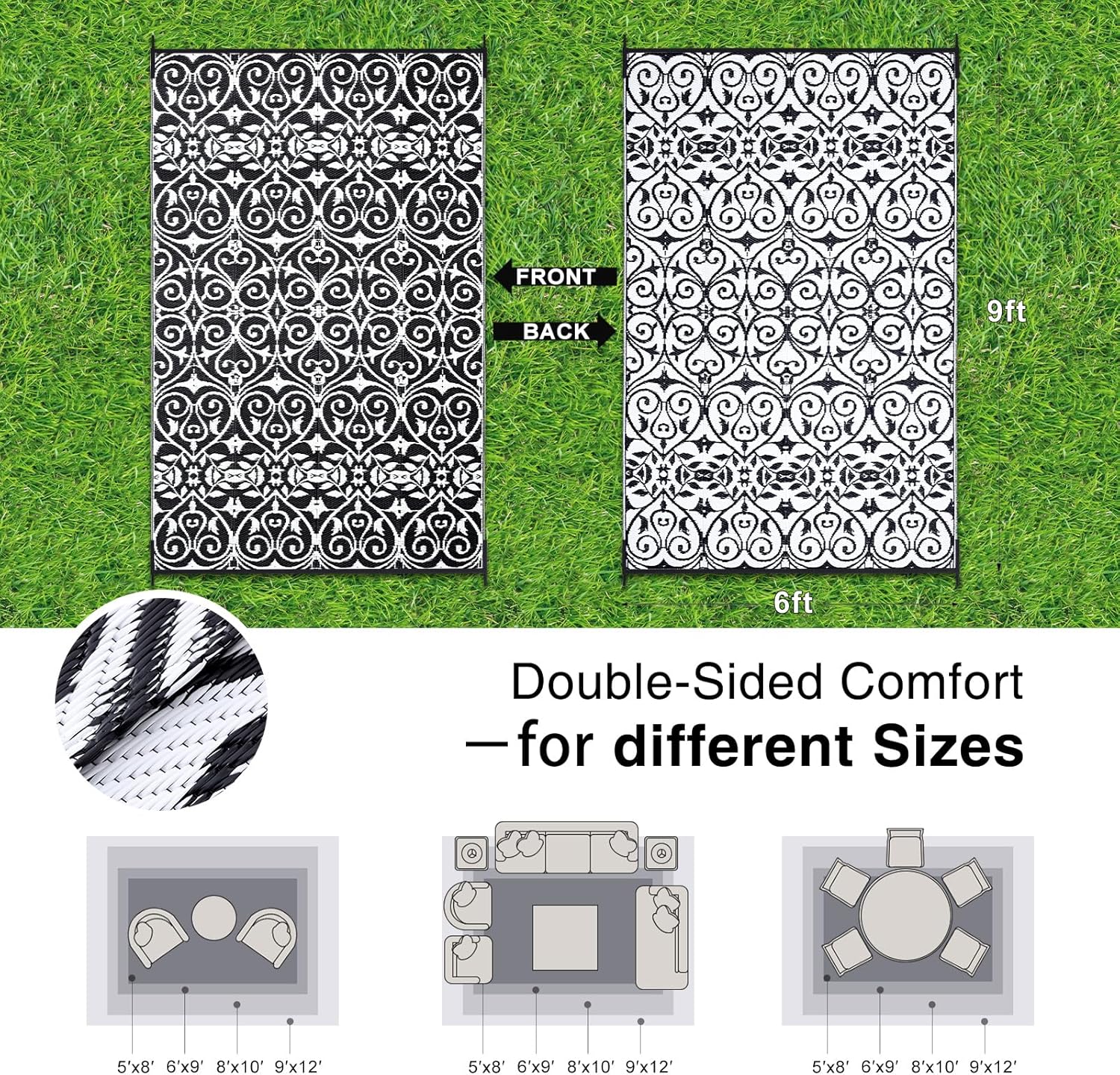 • Lightweight & Portable: Ultra-lightweight and foldable, this outdoor rug is a breeze to carry and store. Take it to picnics, beach outings, or camping trips with ease. Perfect for casual outdoor gatherings, it combines practicality with effortless portability.