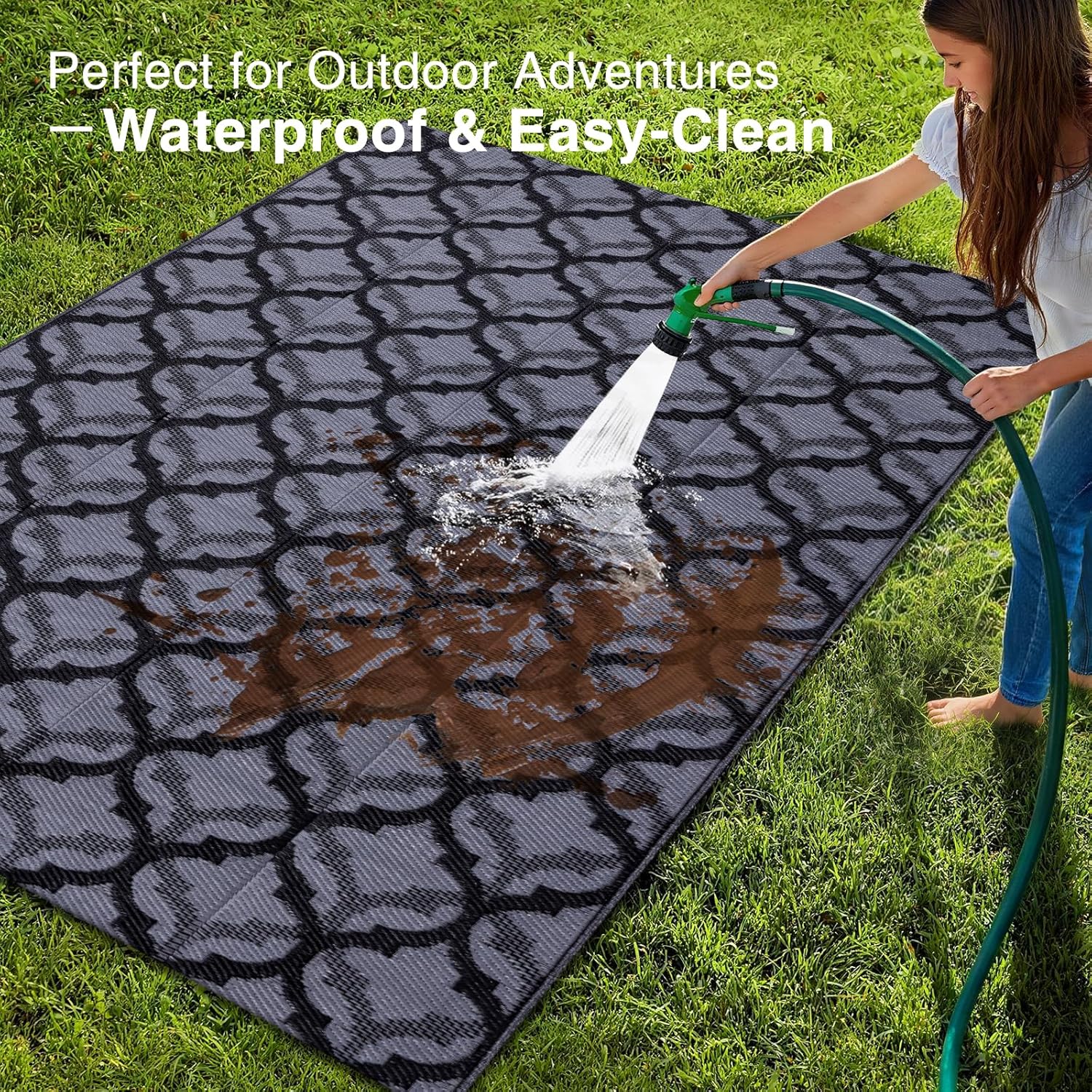 • Gentle Underfoot & Relaxing: The woven plastic straws create a soft, comfortable surface, perfect for barefoot walking and relaxation. Whether you're lounging on your patio or enjoying a picnic, this outdoor carpet for patio enhances your outdoor experience.
