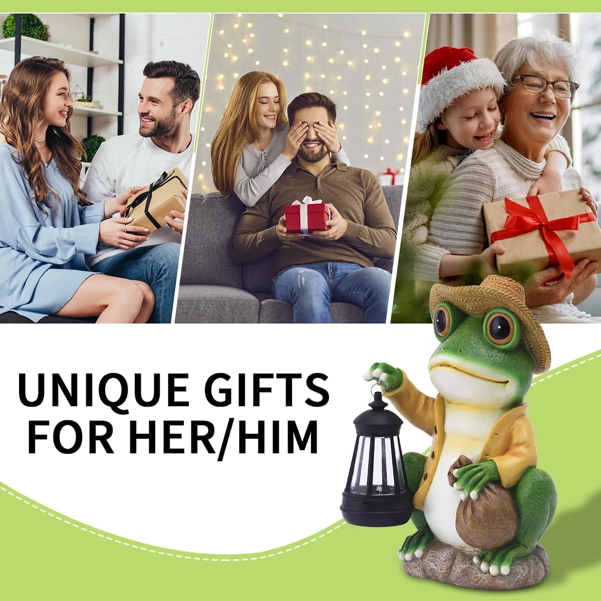 • Outdoor Garden Statues:This Frog garden statues with solar lantern measures 3.5*10*6 inches。 The statue will decorate your lawn or patio in the daytime, while providing glow at night, adding a fun and relaxing atmosphere to your porch, pond, fairy garden,yard.
