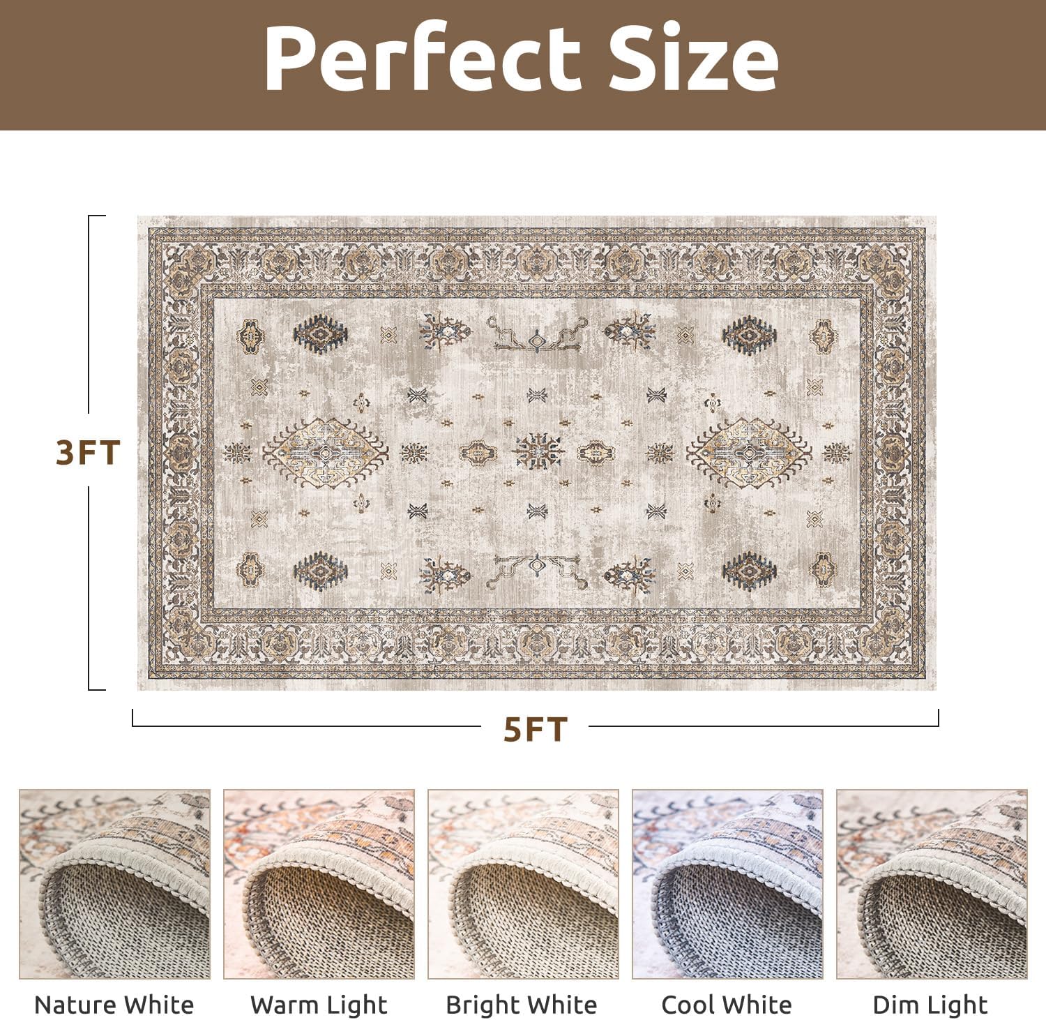 AMOAMI-Vintage Area Rug 3x5 Brown Rugs for Living Room-Soft Washable Rug Non Slip Entryway Rug Indoor Vintage Throw Accent for Bedroom Laundry Room Dining Bathroom Bedside