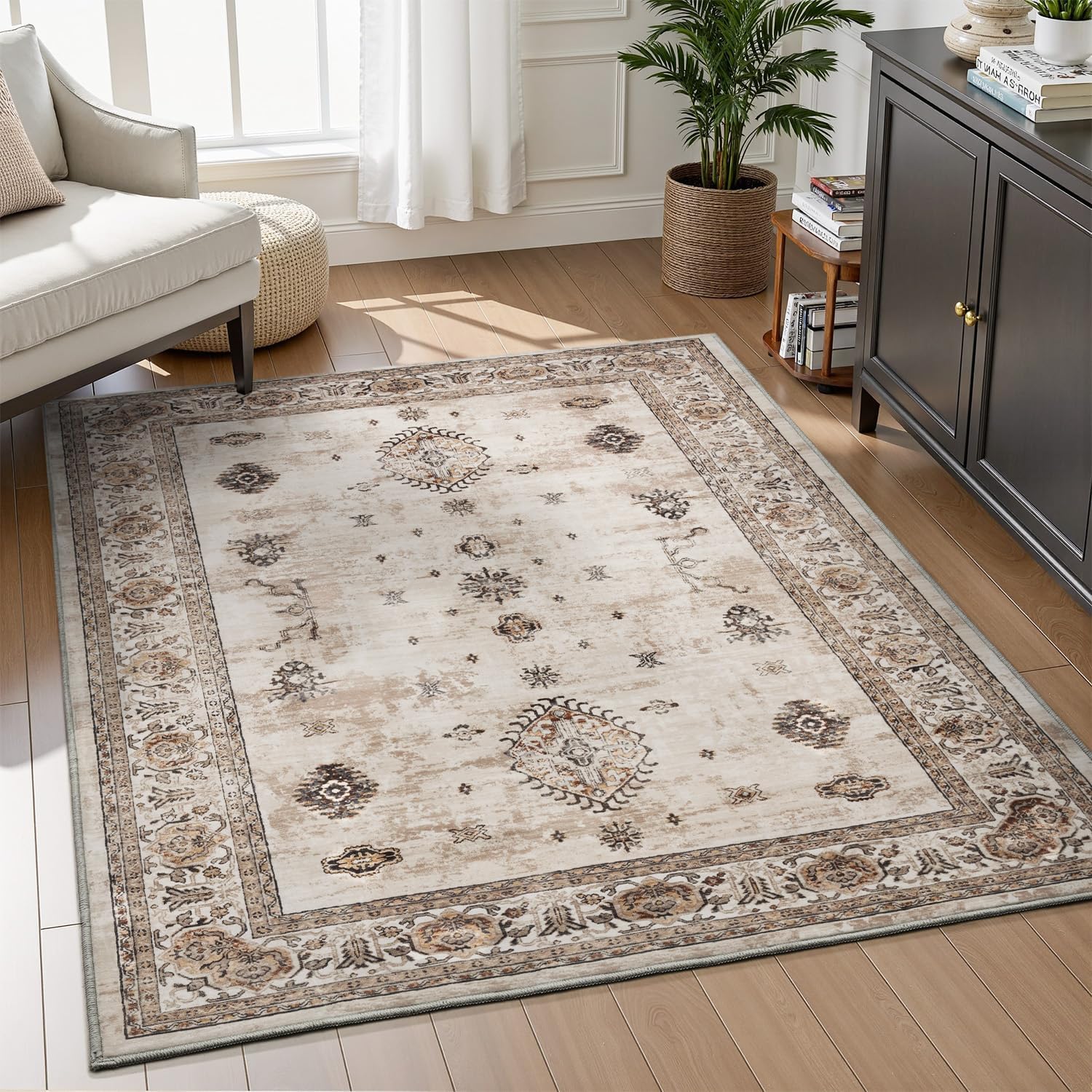 • Non Slip&Durable: non-slip backing ensures the living room rug stays firmly in place, reducing risk of slips—crucial for high-traffic areas with children or elderly. Its sturdy construction enhances durability, enabling 3x5 area rugs to endure daily use without shedding or fading, guaranteeing lasting quality.