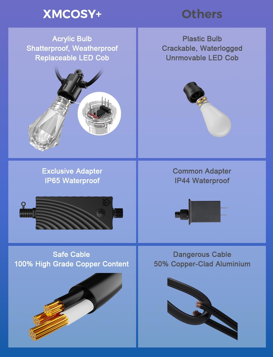 • Smart App & Voice Control: Manage your patio string lights with XMcosy App, link with Alexa & Google Home, or set an auto timer. Control with one tap or one command, add a specious lighting for yard, porch, gazebo, balcony, bistro, or garden.