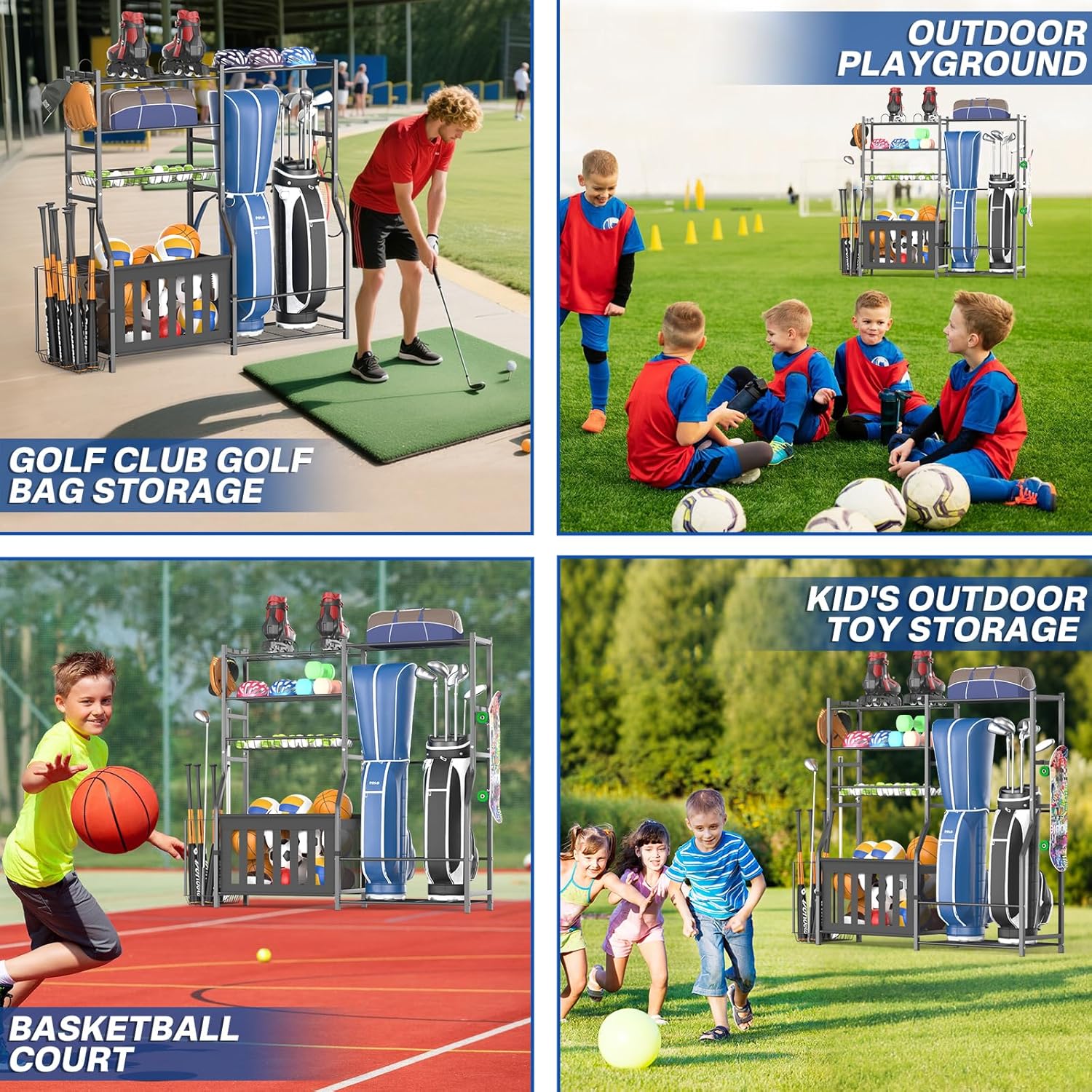 • OrganizeLink Golf Bag Organizer: Perfect for sports families with kids; this sports equipment organizer can be used as a basketball rack, golf bag stand, sports ball storage, and garage toy organizer; It allows kids to easily access their gear, encouraging active participation in sports while keeping everything tidy and visible