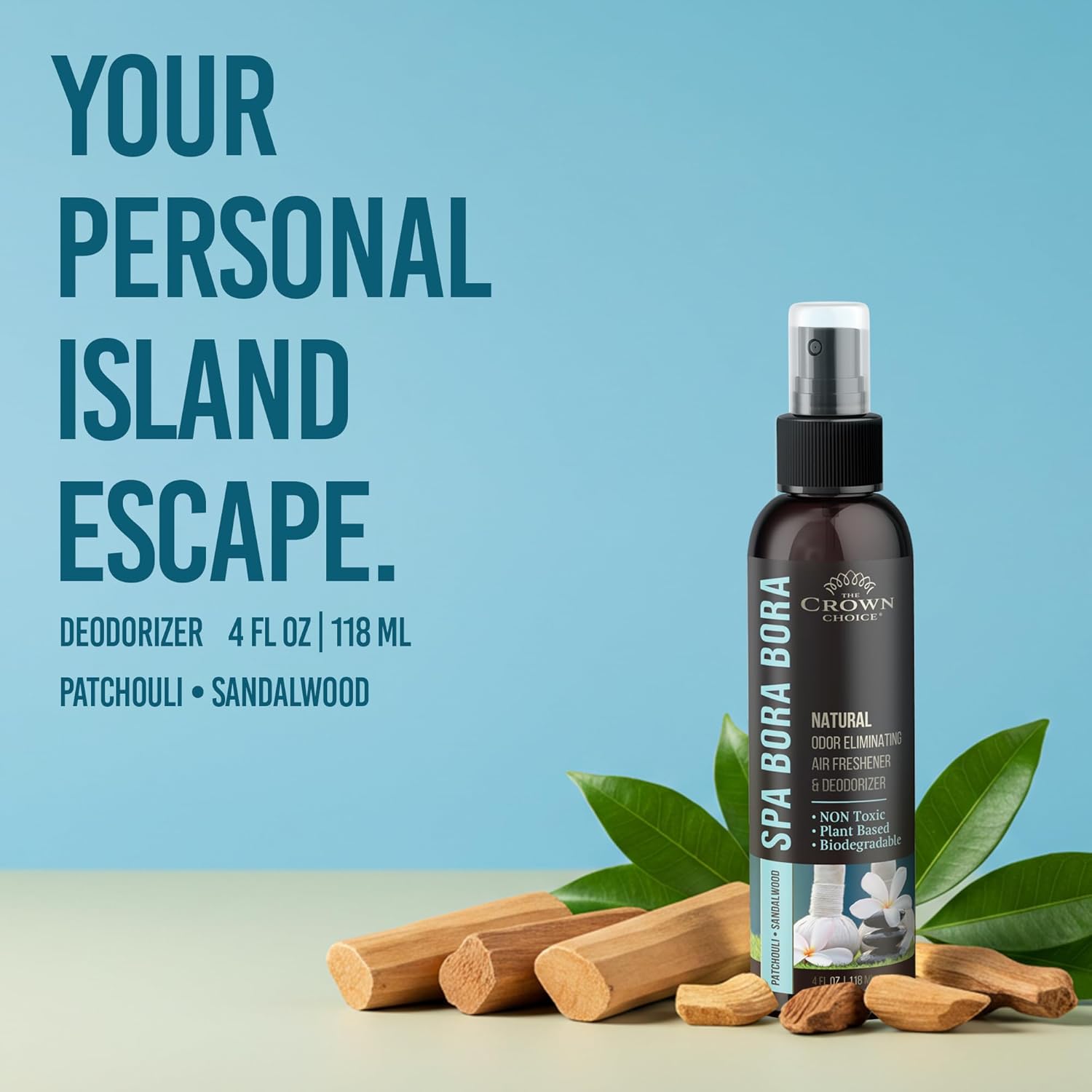 • SANDALWOOD & PATCHOULI AIR FRESHENER SPRAY This natural air freshener spray is infused with essential oils for a refreshing, clean, and long-lasting, soothing home fragrance. Perfect as a fabric refresher spray, musty basement odor eliminator, neutralize urine smell, and pet deodorizer.