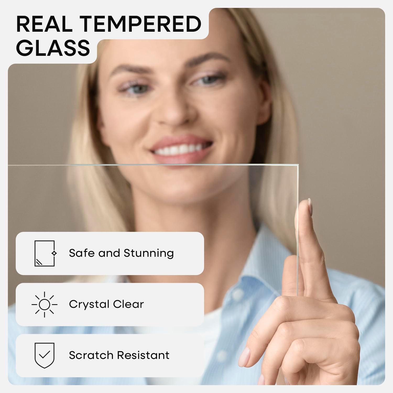 • GALLERY GRADE GLASS, TRUE CLARITY. Why settle for cloudy plexi? Our ultra-clear tempered glass sharpens every detail and adds instant polish to your photo or print.