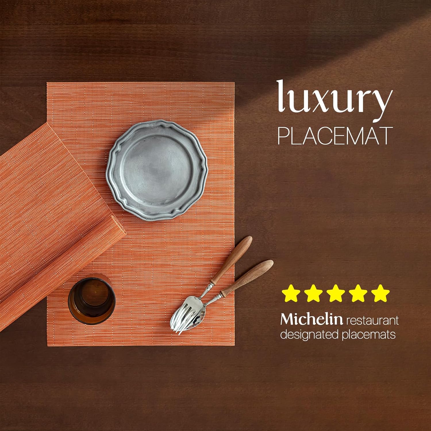 LEXMORE Placemats Set of 4 Vinyl/Plastic Woven Place Mats for Kitchen Table Indoor/Outdoor Washable Placemat Wipeable Dining Table Mats(Orange)