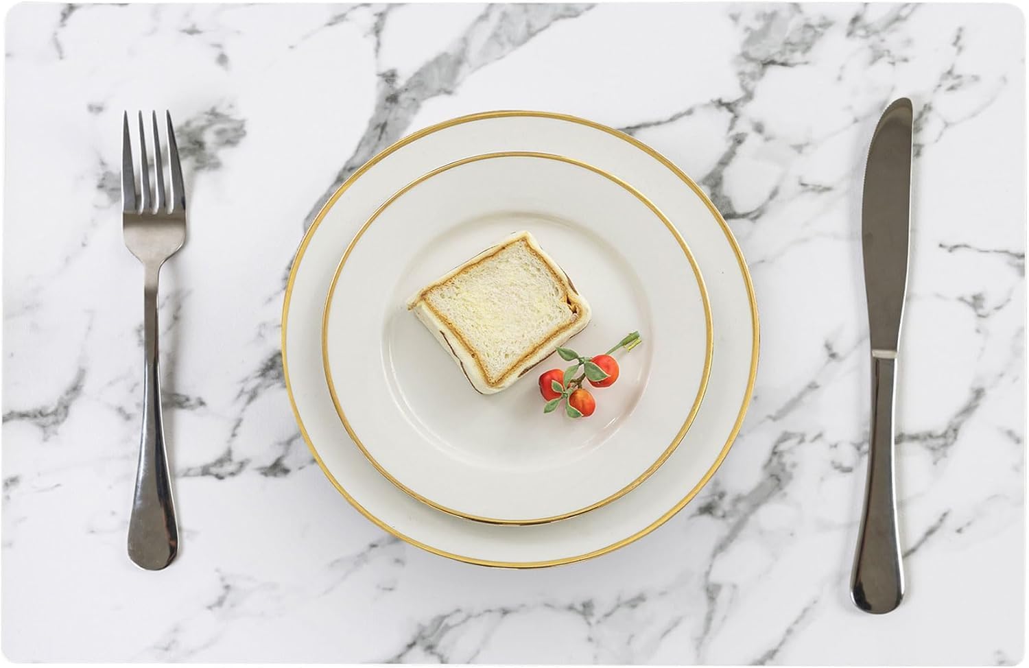 Romanstile Vinyl Placemats Set of 12-12 X 18 Inch - Heat Resistant Place Mats 100% Waterproof Oilproof Wipeable Reversible Faux Leather Table Mats for Kitchen/Dining/Party/Outdoor, Marble