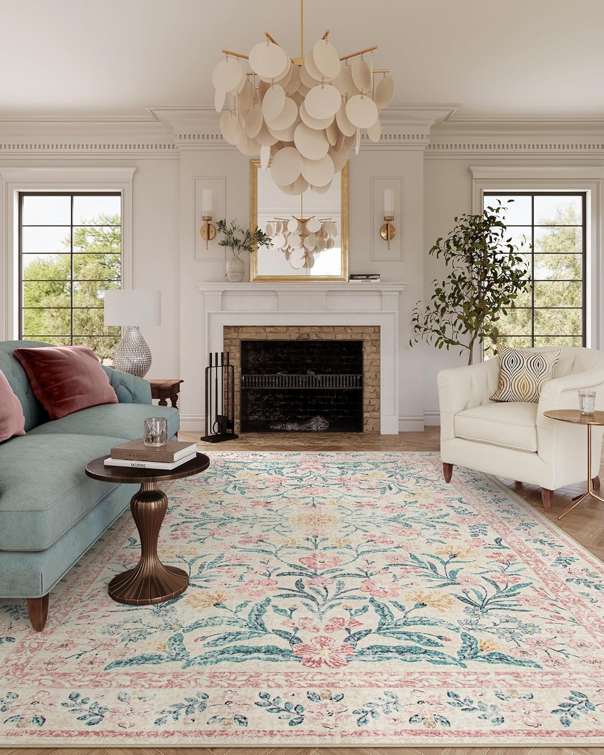 • [Pieces to Elevate Your Home] Our area rugs are designed with interwoven floral and botanical motifs that incorporate a modern aesthetic and make a splash. It's ideal for girls bedroom and any room, injecting vibrancy and freshness into your space