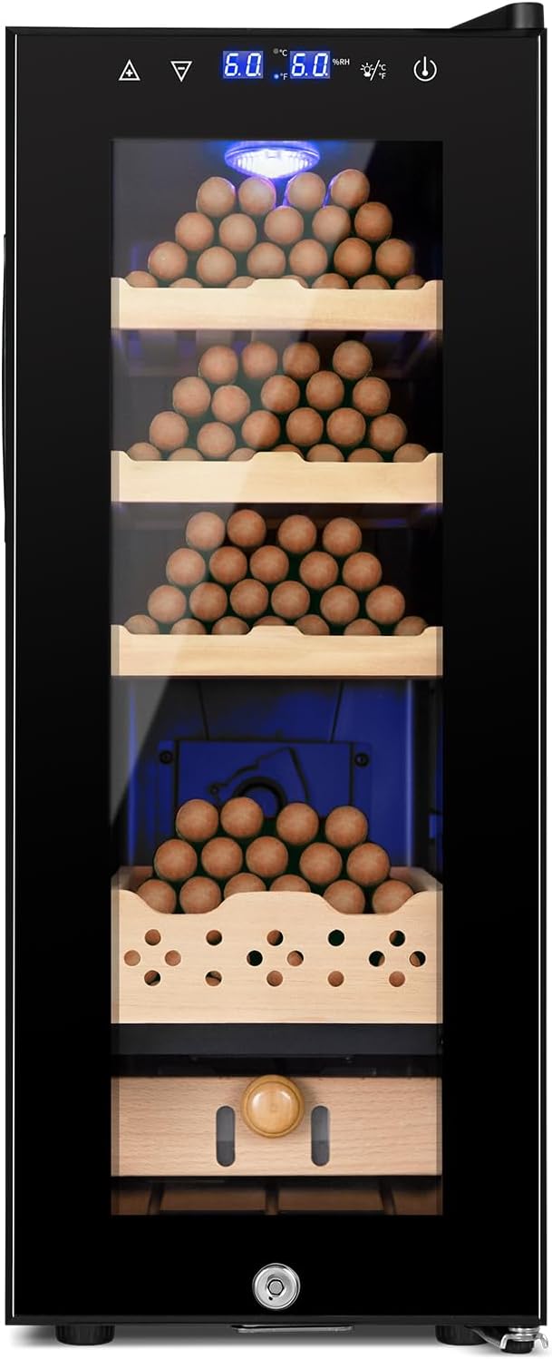 Electric Humidor for Cigars, 35L 250 Counts Large Capacity Thermostatic Desktop Humidor Cabinet with Digital LED Screen, Safety Lock,Smart Humidity & Temp Control, Gifts for Men