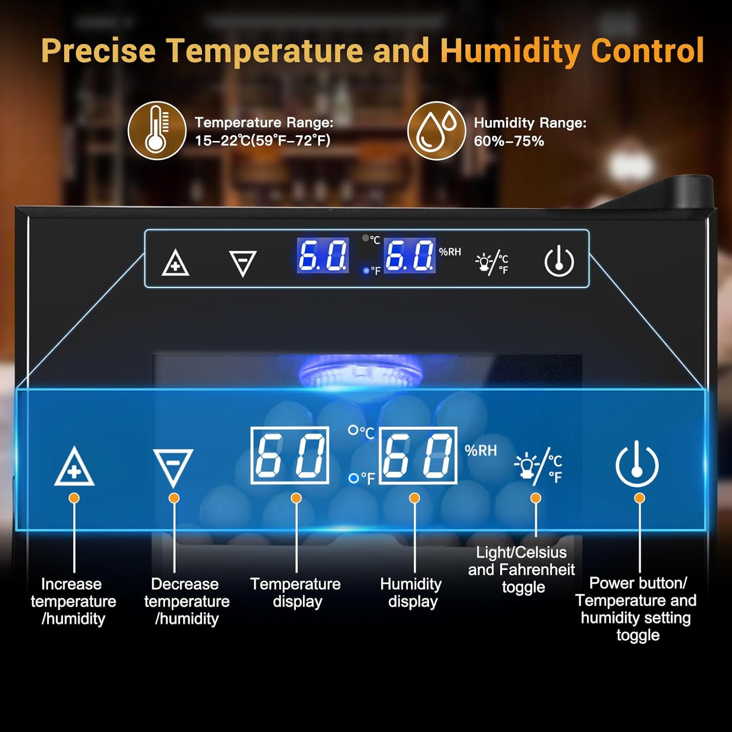 • Precision at Your Fingertips: Take charge with touch-controlled temperature and humidity settings, maintaining interior climates between 15-22°C (59-72°F) and humidity levels ranging from 60% to 75%.