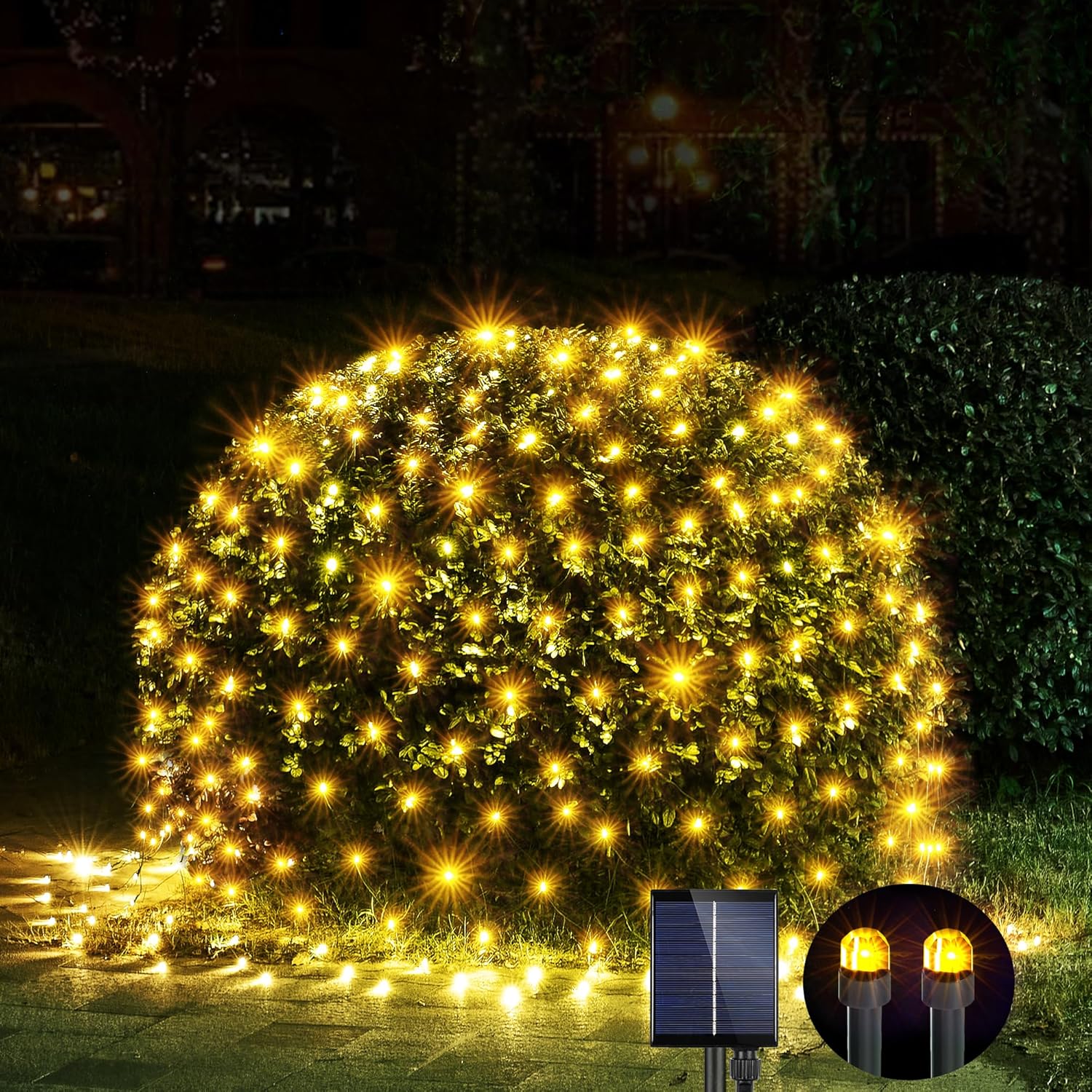 WBao Solar Christmas Net Lights 200LED F8 Big Bulbs, 8.4ft x 5.2ft Christmas Bushes Lights with Remote Control, 8 Modes, Timer, Waterproof for Lawn, Bushes, Outdoor Christmas Decorations, Warm White