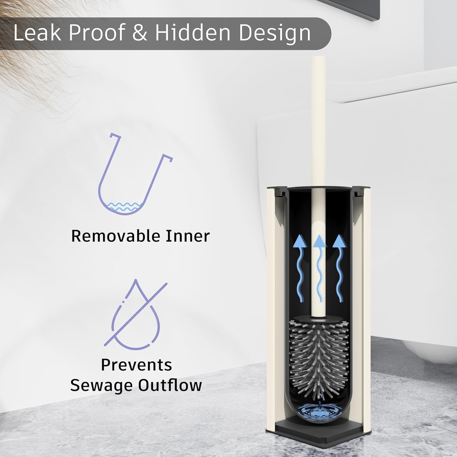 BGL Standing Toilet Brush and Holder Matte White Aluminium Toilet Bowl Cleaner Brush and Holder for Bathroom Storage and Organization, Square Design Sturdy and Space Saving