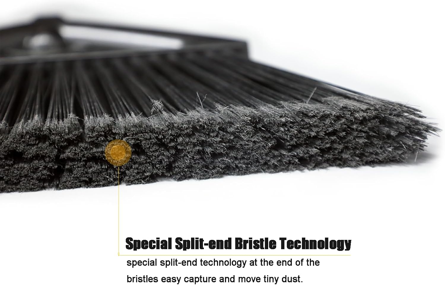 • Split-End Bristle Technology: Our heavy-duty broom features firm bristles with a special split-end design that easily captures and moves tiny dust particles