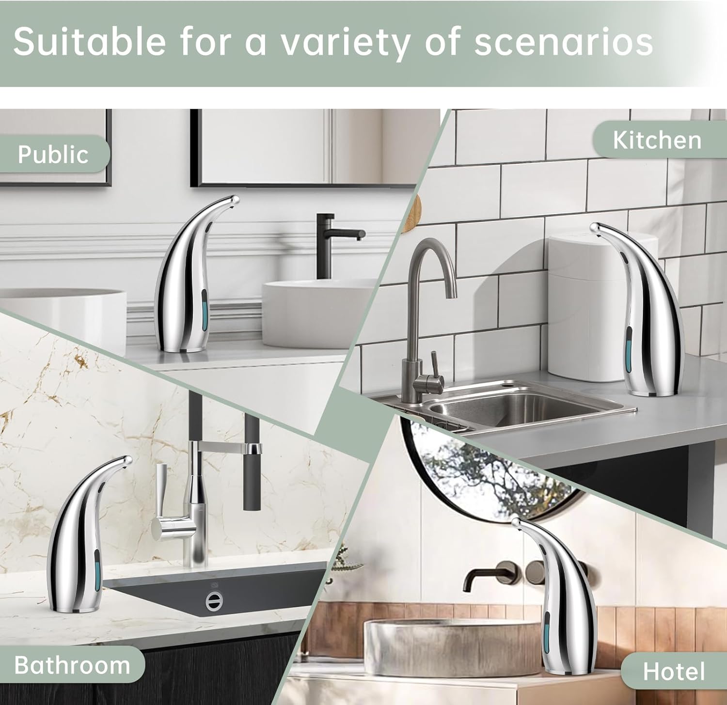 • 【Touch-Free Convenience】Our automatic soap dispenser touchless activates instantly when hands approach. Keep bathroom vanities and kitchen areas cleaner with this hands-free solution.
