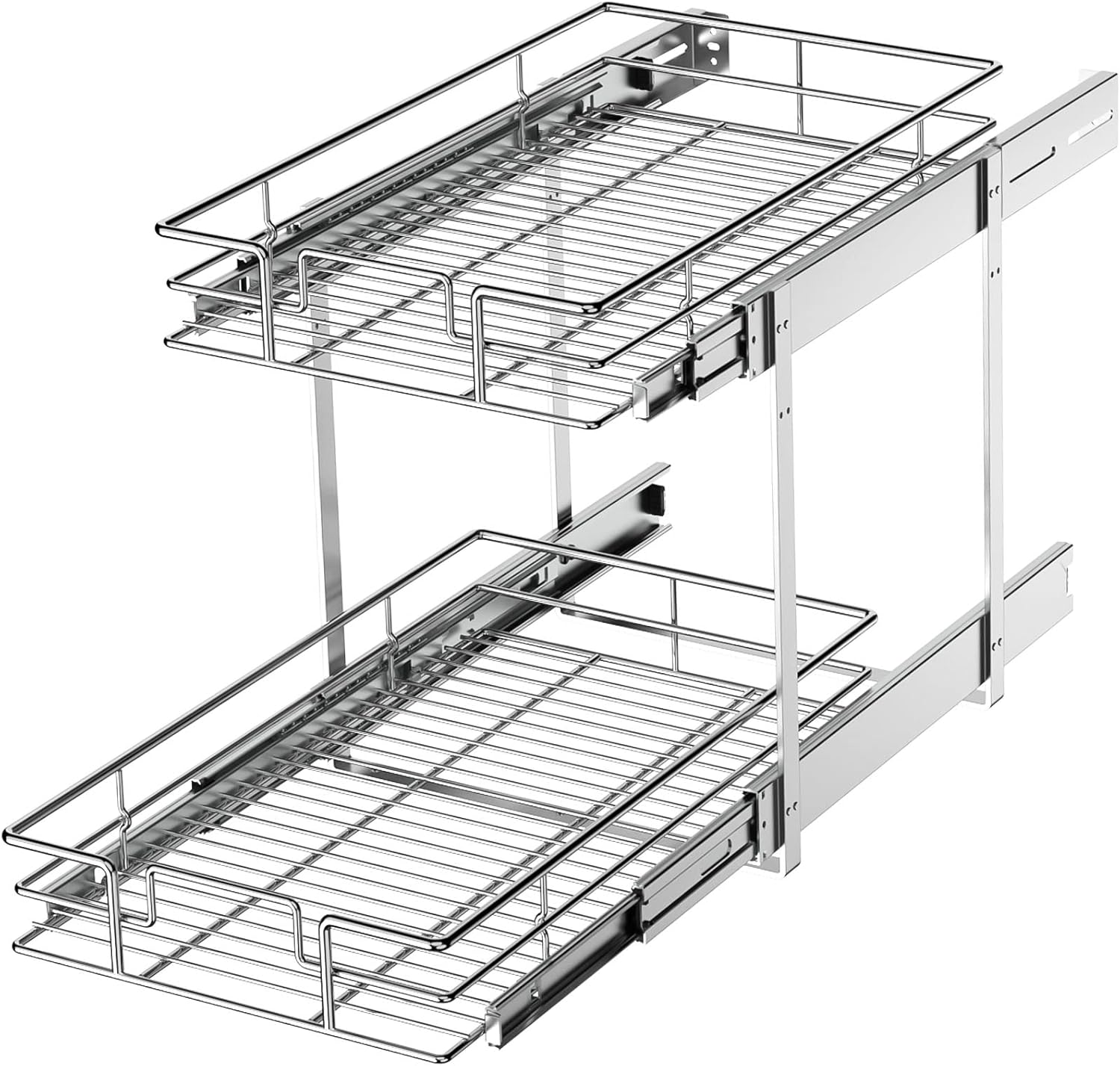 LOVMOR 2 Tier Individual Pull Out Cabinet Organizer 10½" W x 21½" D, Slide Out Kitchen Cabinet Storage Sliding Shelves