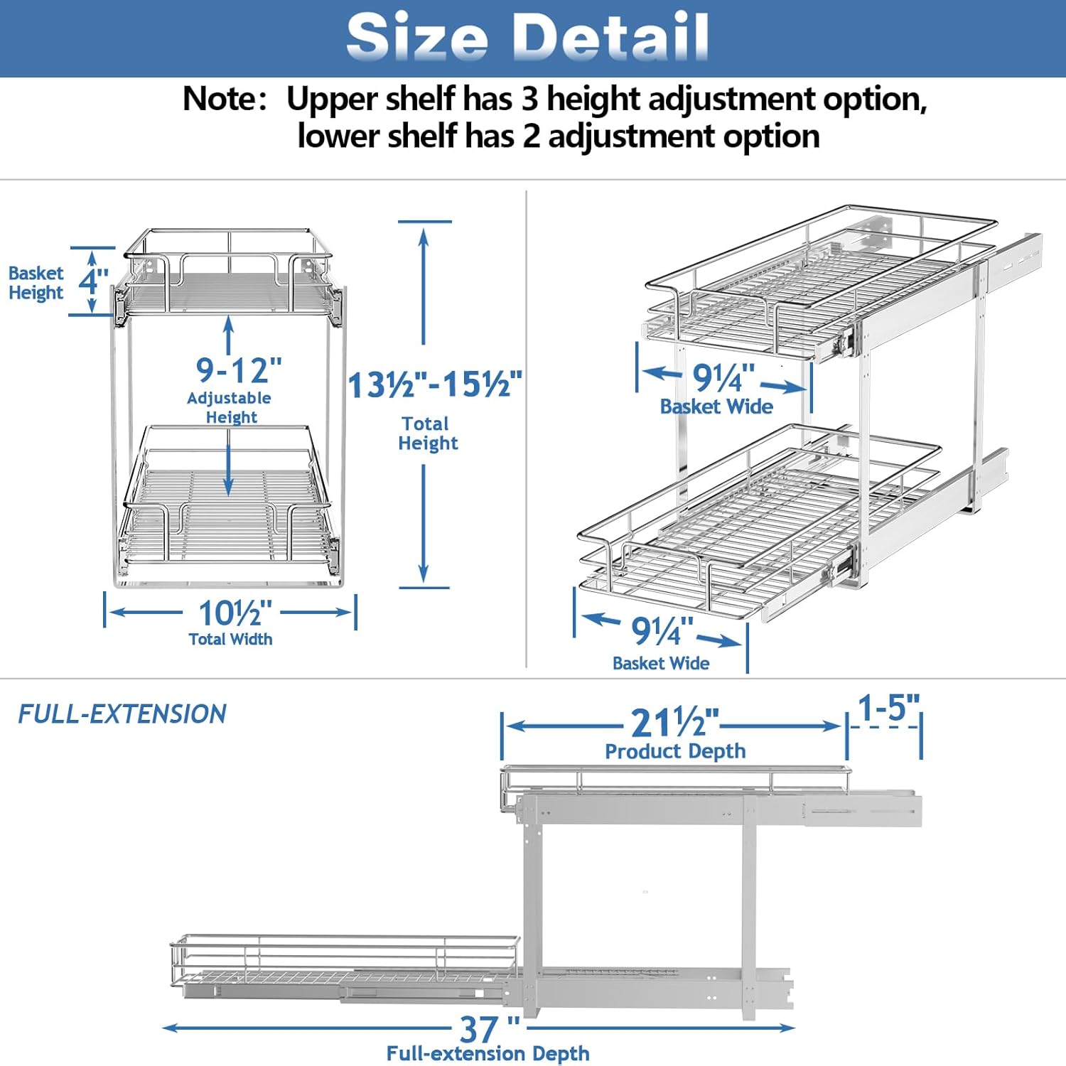 • Both of the shelf can pull out individually, cabinet storagestrong enough to hold up to 100 lbs.