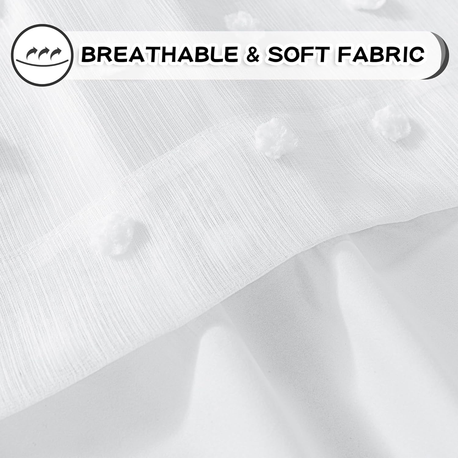 • Unique Design:These cute pom poms combine bohemian elements with modern style. The white sheer curtain is embellished with cute pom poms, adding interest, glamour and a beautiful look to your windows.