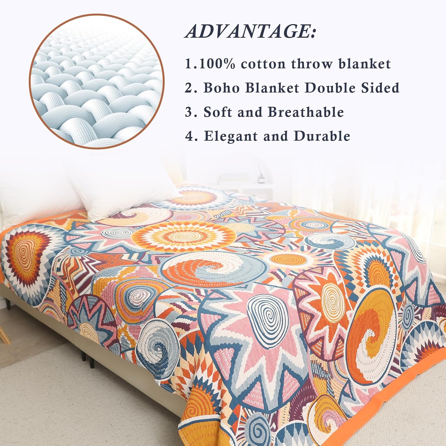 • UNIQUE DESIGN: This bohemian farmhouse blanket has a very chic, vintage look. Our bohemian bed blanket features a beautiful animal or floral geometric pattern on both the front and back and combines elements and vibrant colors.