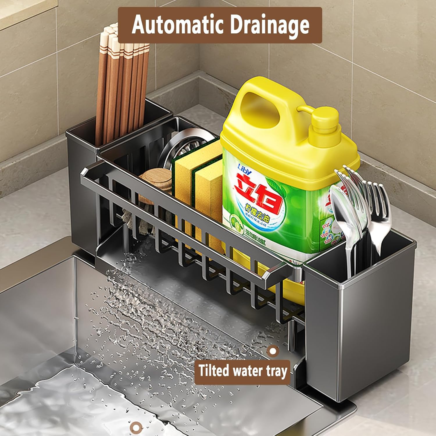 • Perfect Self-Draining Tray Design:This kitchen sink caddy features a self draining tray design that quickly drains water into the sink, helping your cleaning tools dry faster and stay clean.