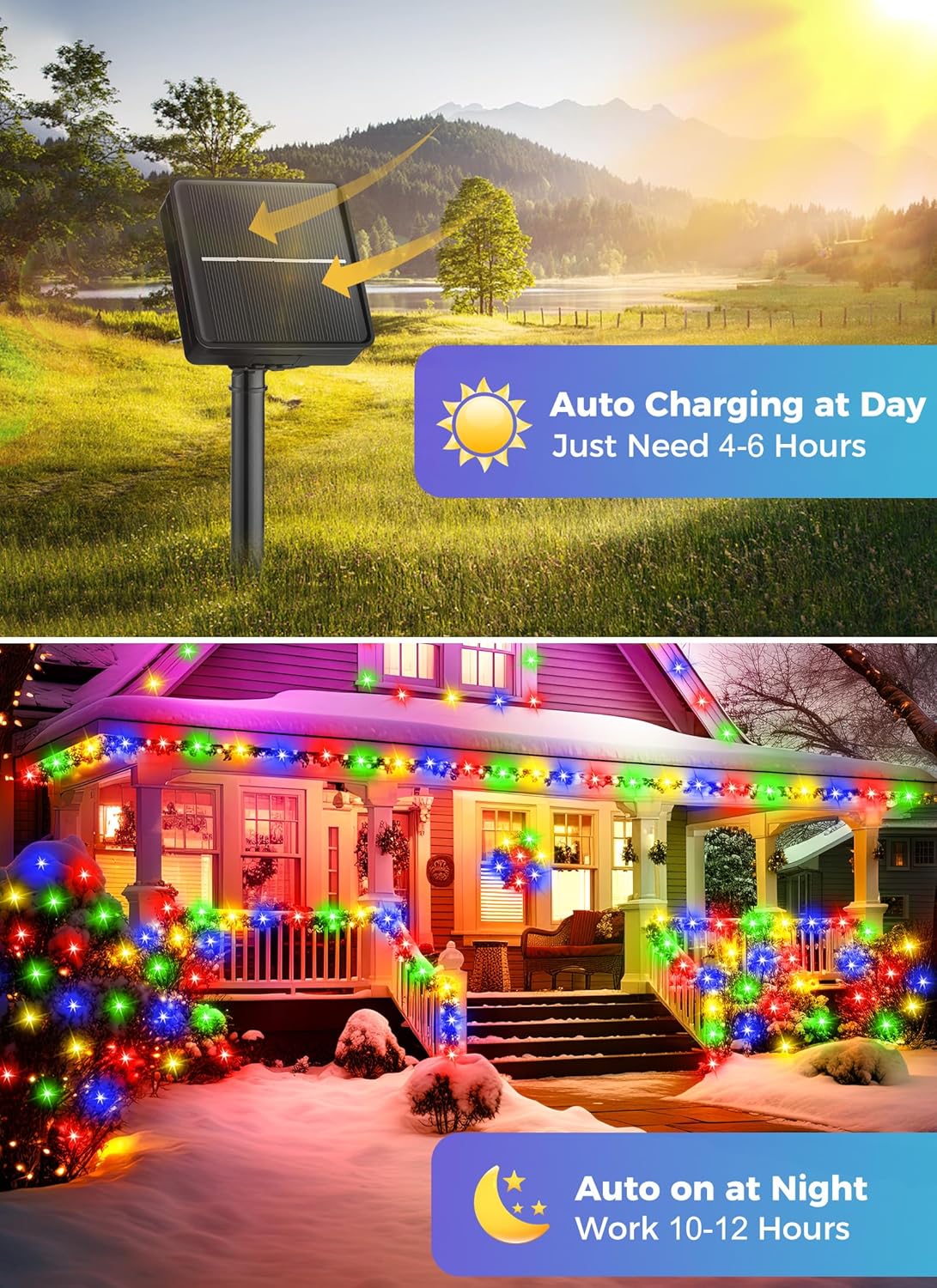 • IP65 Waterproof Solar String Lights Outdoor: The solar christmas lights outdoor have IP65 waterproof performance, meet your requirements for indoor or outdoor use, can easily cope with all kinds of outdoor harsh weather