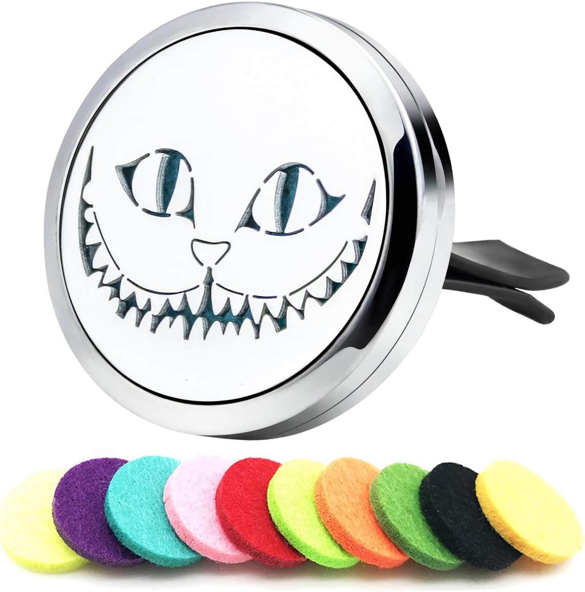 • 【Material 】High quality 316L stainless steel 30mm car diffuser vent clip, solid and smooth, anti-corrosion, easy to clean, we pair our diffuser car vent with reusable 10 color refill pads. Complete with a solid back and two magnets for a secure close, you’ll never have to worry about getting essential Oil all over your car.