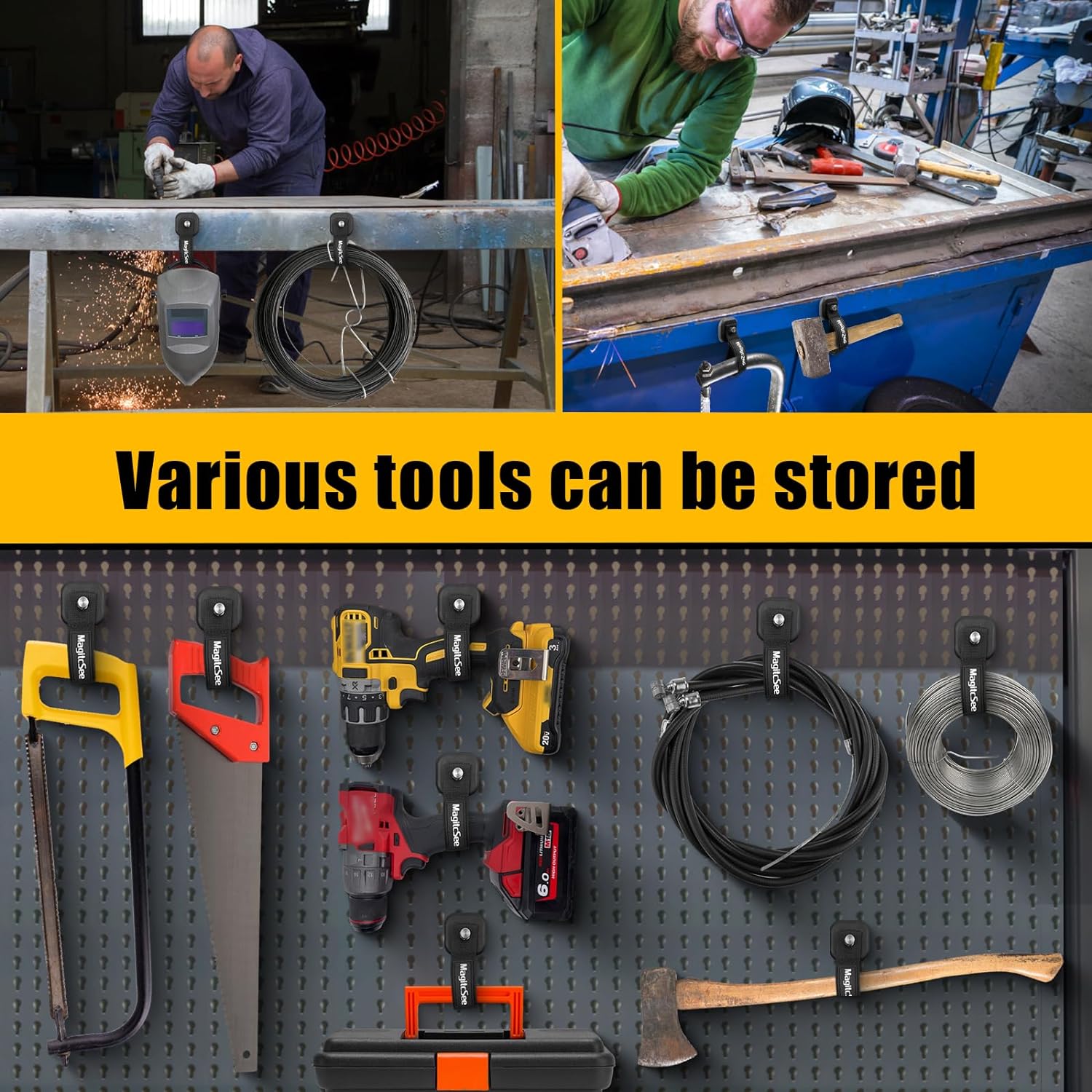 • Convenient and Quick Access: Attach the hooks to metal surface such as a toolbox, RV wall, cruise cabinet, ladder, pegboard around your workbench or vehicle to easily access your utility cord, cordless drills and impact drivers, etc.