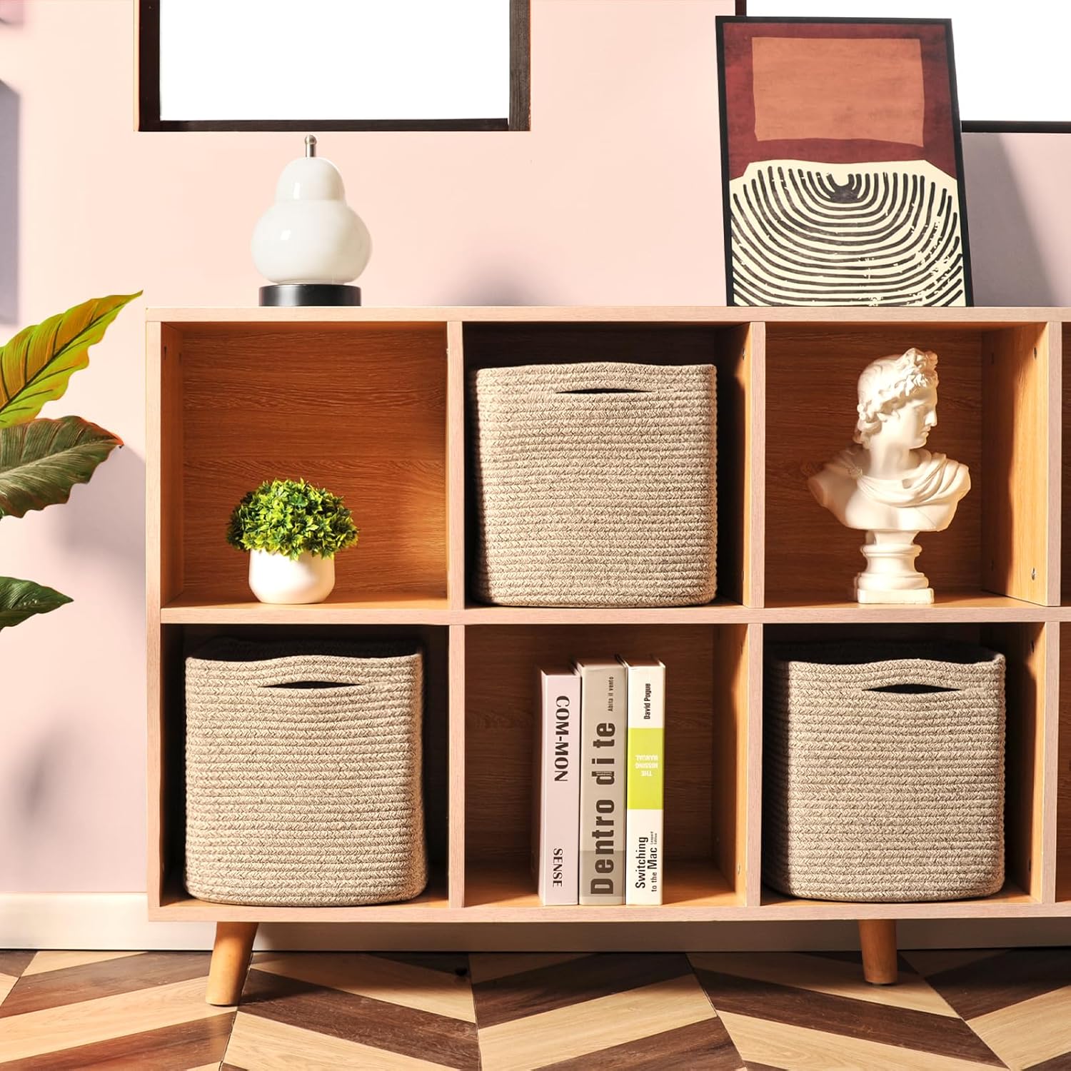 • Natural Cotton Rope Baskets for Storage: Our 11x11 cube storage bins are all made of natural cotton. These storage baskets for shelves are soft, durable, foldable and safe for children and pets. Using our woven baskets for storage to organise and store your home will give you peace of mind