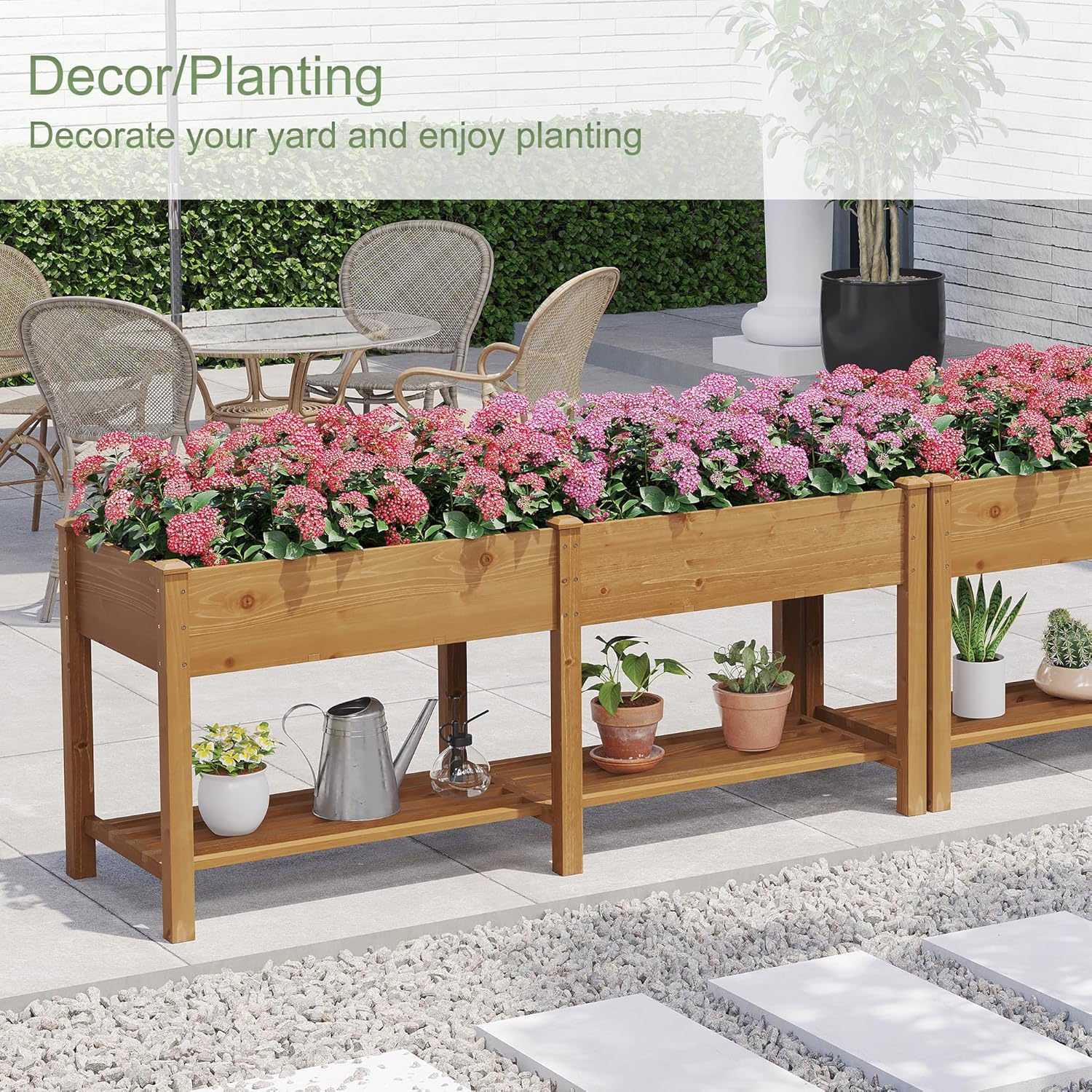 • Elevated Design: This raised garden bed features a sturdy wood planter box with legs, elevating it off the ground for convenient gardening.