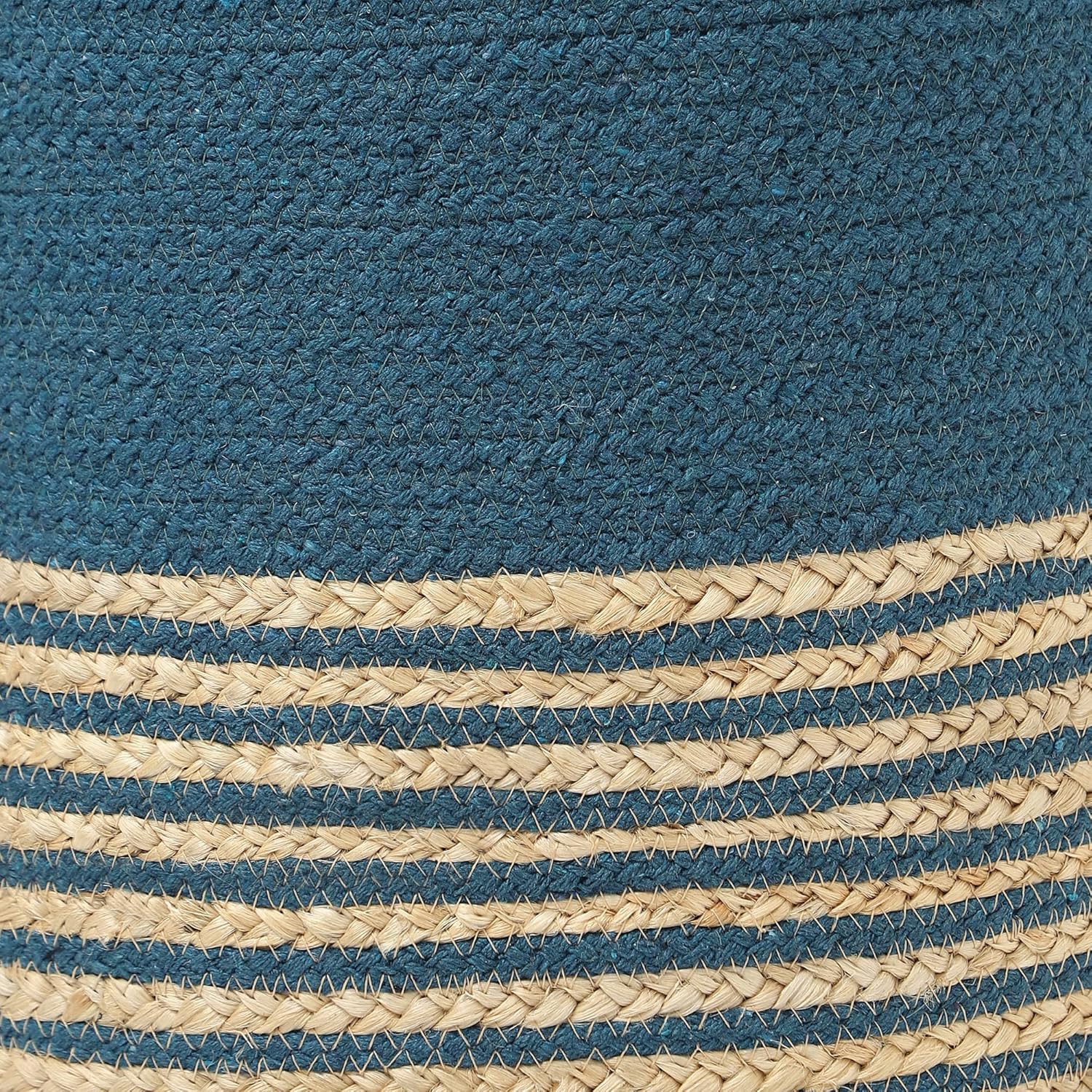 REDEARTH · Cylindrical Pouf Foot Stool Ottoman - Jute Braided Pouffe Poof Accent Sitting Footrest for Living Room, Bedroom, Nursery, Patio, Lounge & Other Rooms (Teal Natural, 14.5"x14.5"x16")