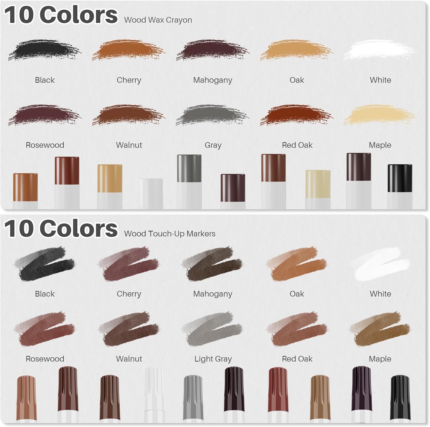 • Wide Applications: The wood crayons and wood touch-up markers can quickly repair scratches, cracks, and holes on wooden furniture, floors, cabinets, tables, doors, and frames. Using a furniture repair kit for home restoration is an easy and efficient method.
