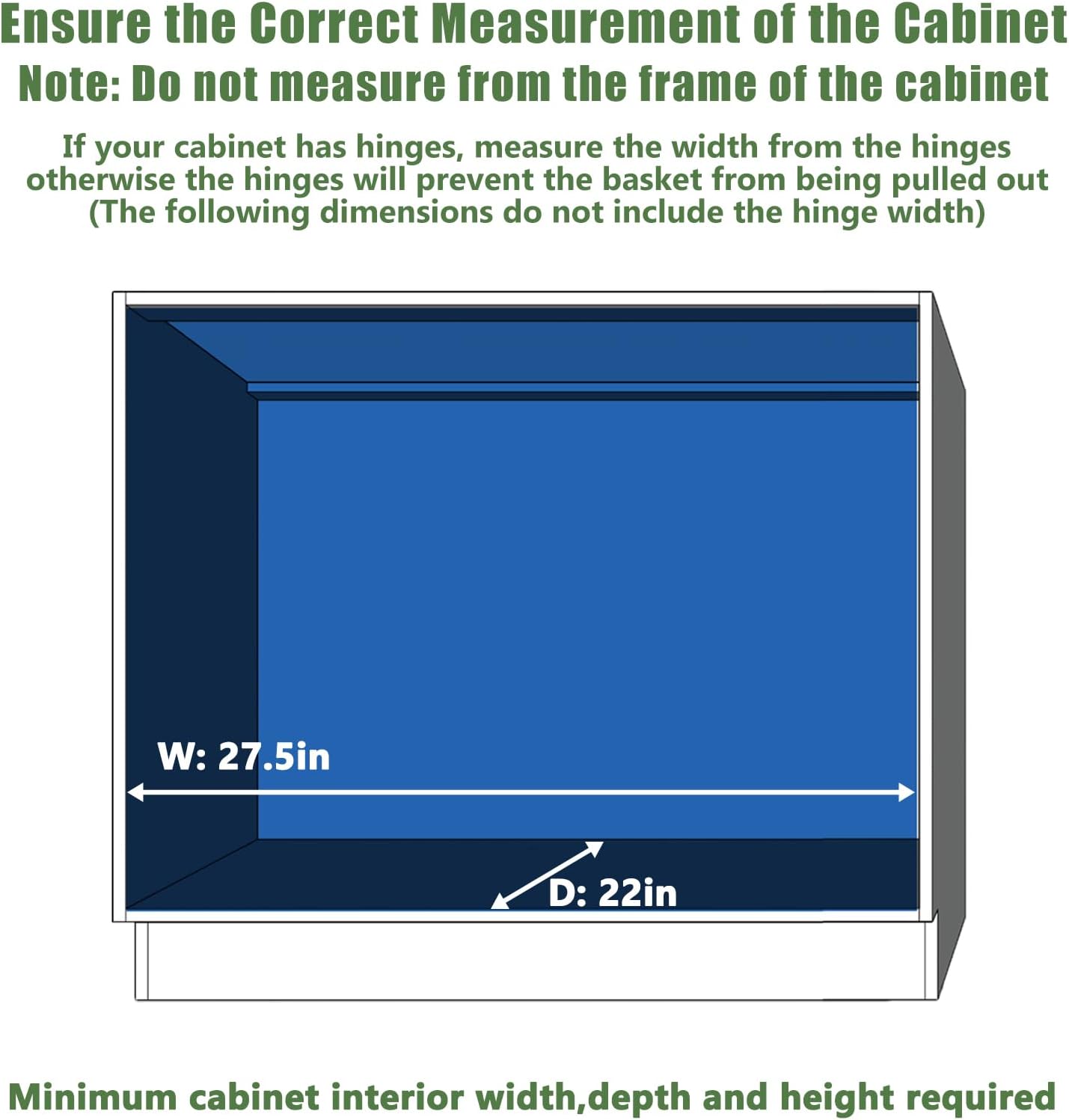 • Measure your cabinet before purchase. Our product is 27 inches wide and 21½ inches deep, so please make sure your opening is 27½ inches or more, and the depth is 22 inches and more.