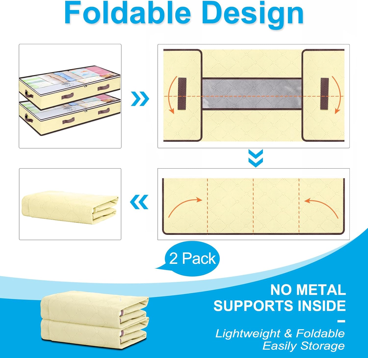 • Multipurpose Underbed Storage Bags : This set of 6 underbed storage containers fits under your bed, under your sofa, and in your closet. Very good for storing quilts, blankets, clothes, pillows, sweaters, towels, toys and other items.