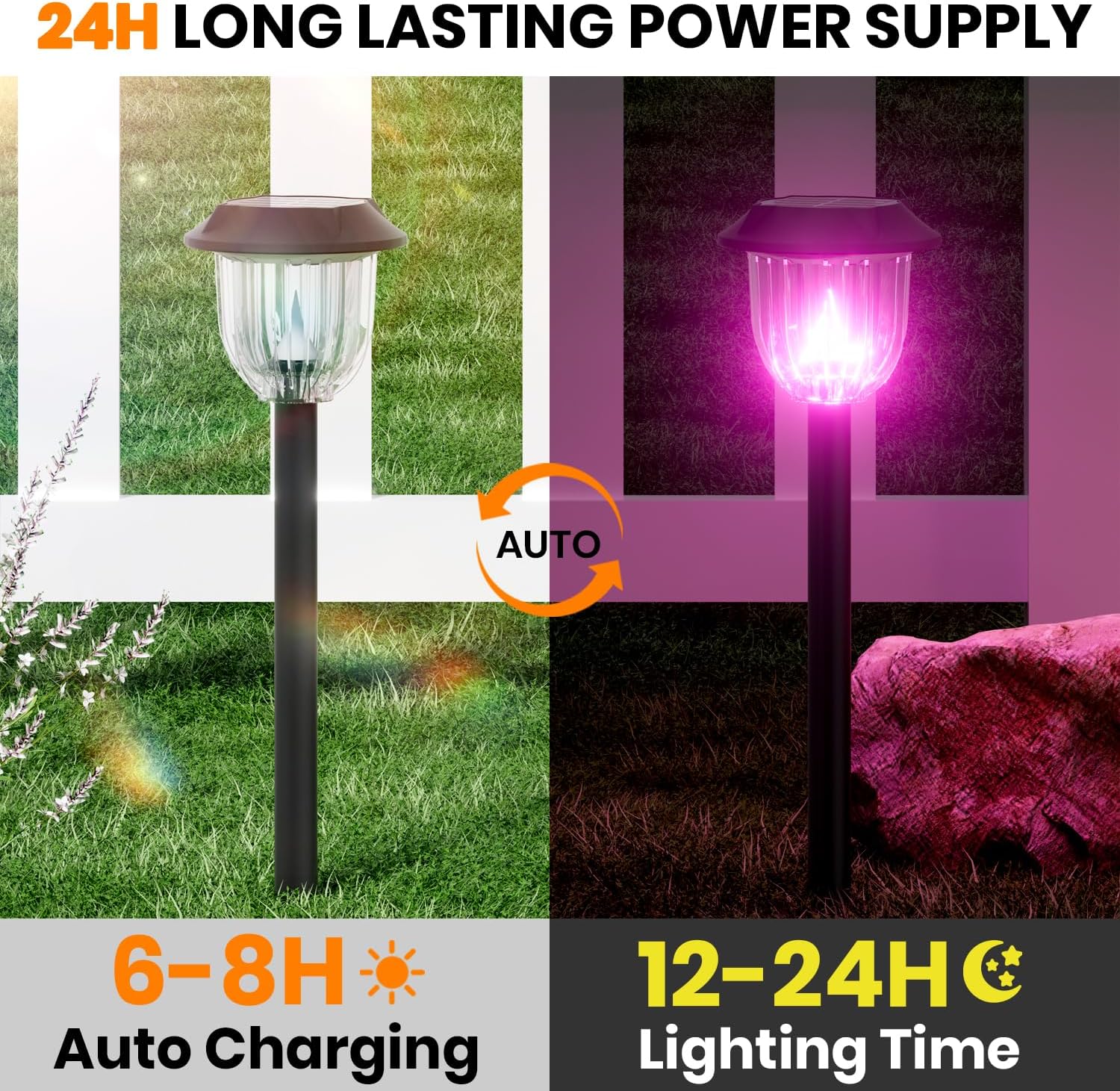 • ♻Effortless Installation & Smart Operation - Transform any outdoor area in minutes with these no-wire-needed solar lights - simply place the stakes and enjoy instant ambiance! The intelligent light sensor automatically activates illumination at dusk and switches off at dawn, while the solar panel efficiently charges even on cloudy days. Perfect for creating beautiful solar lights outdoor pathway arrangements without electrical expertise or ongoing costs.
